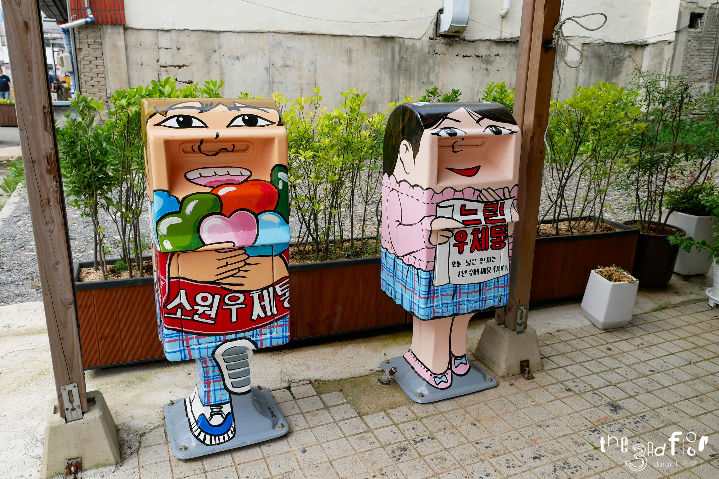 옛 근대 시절의 교복을 입고 있는 학생 그림도 있었고... 7080 스타일의 옷을 입고 있는 젊은 여성의 그림이 그려진 우체통도 있었다.
