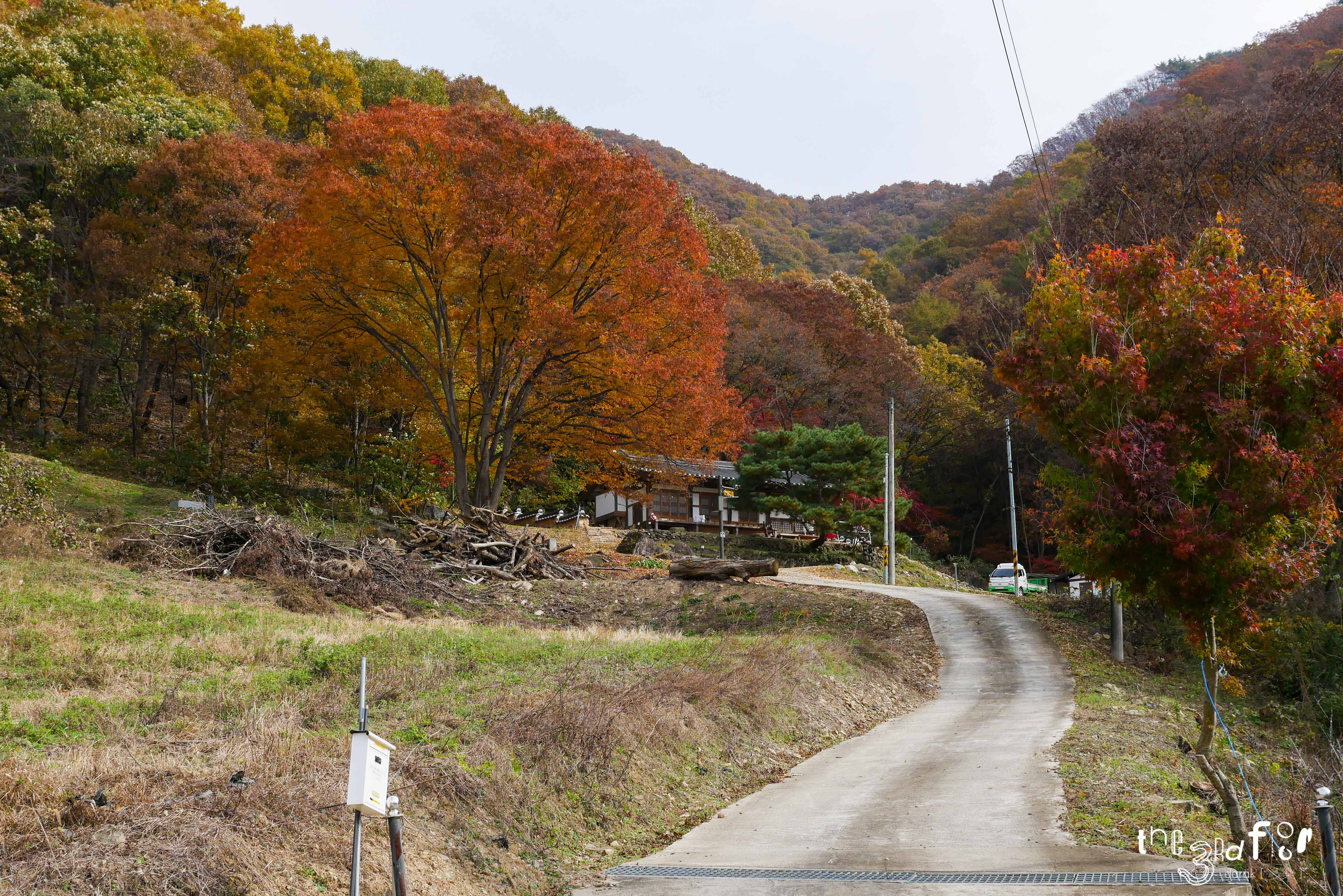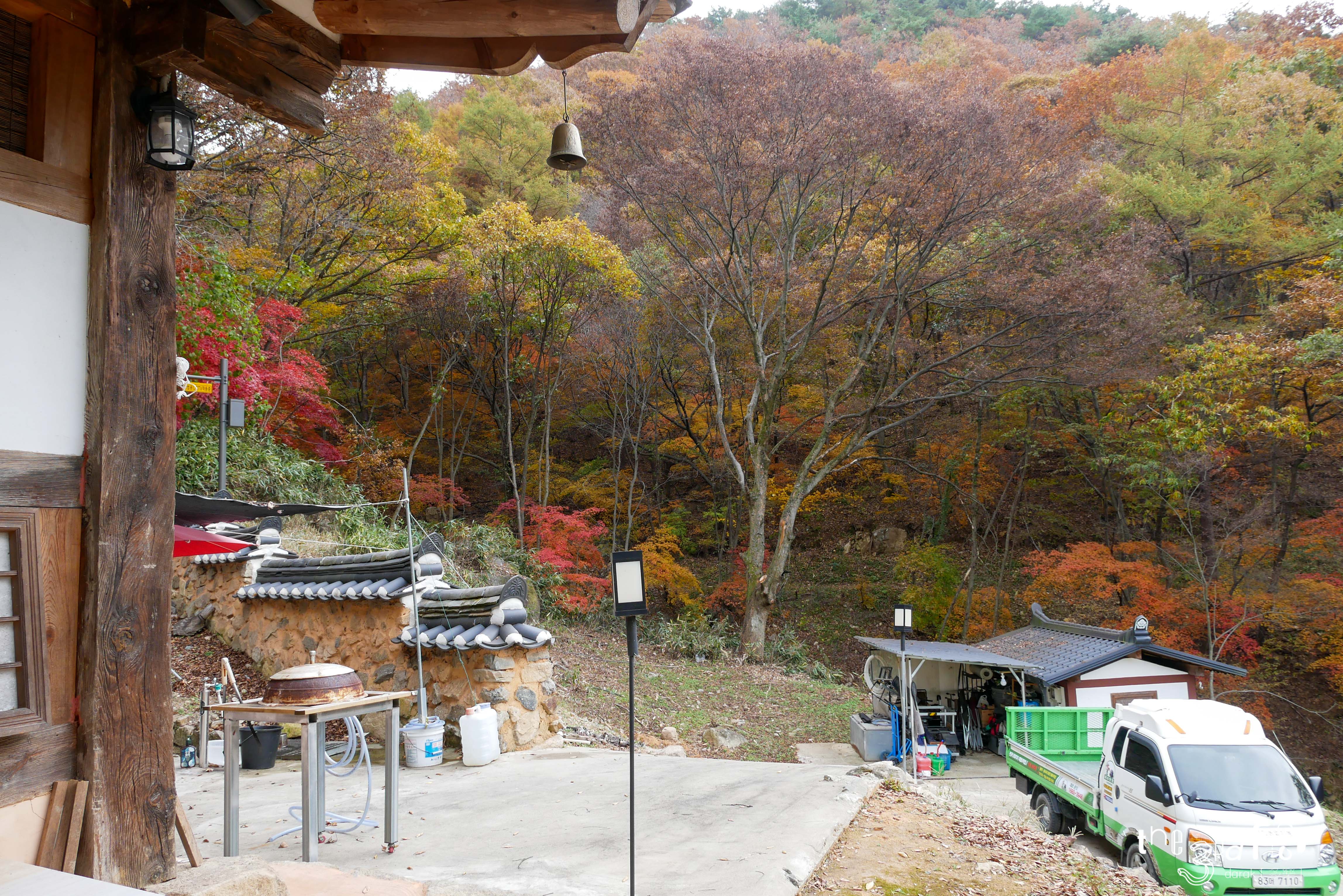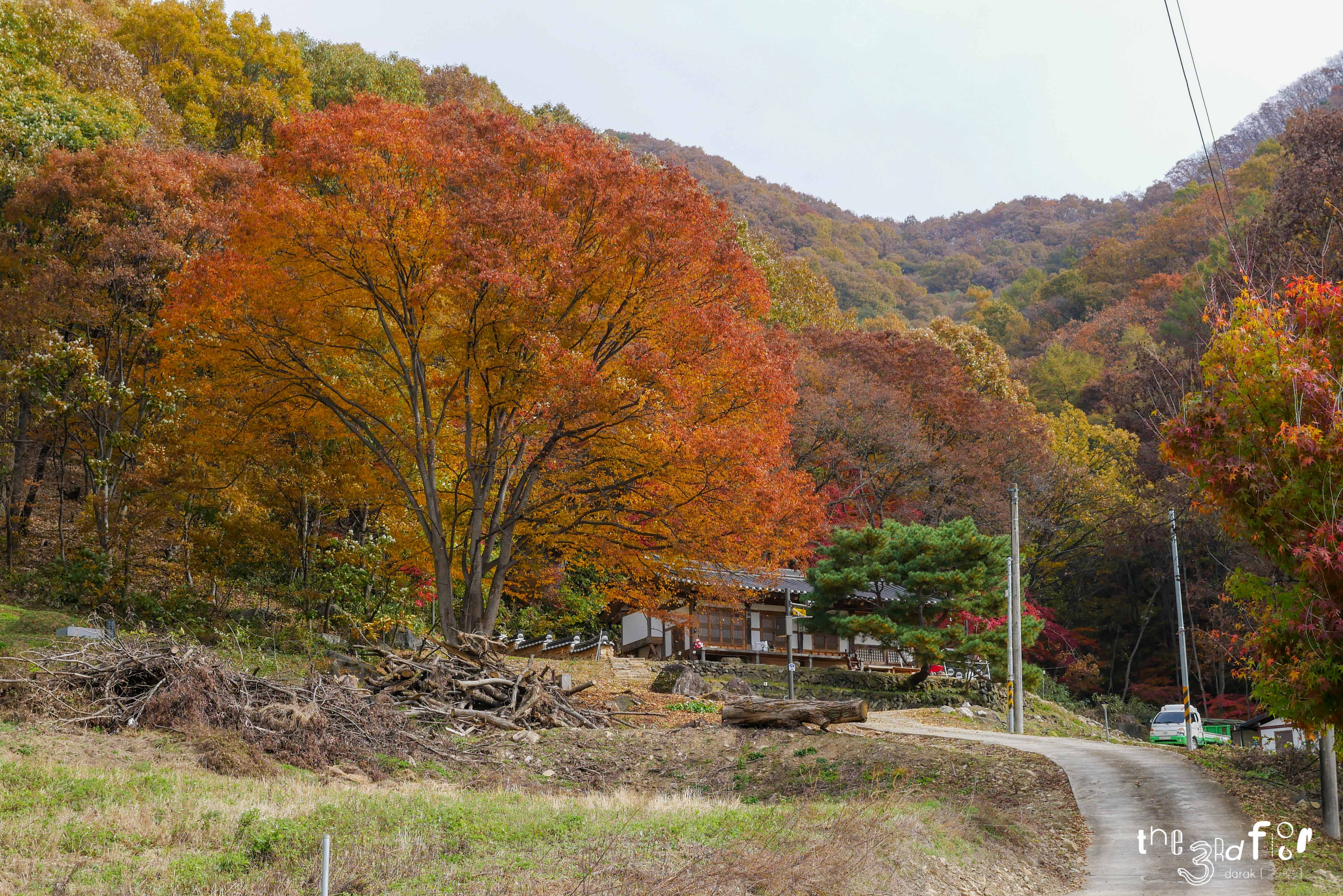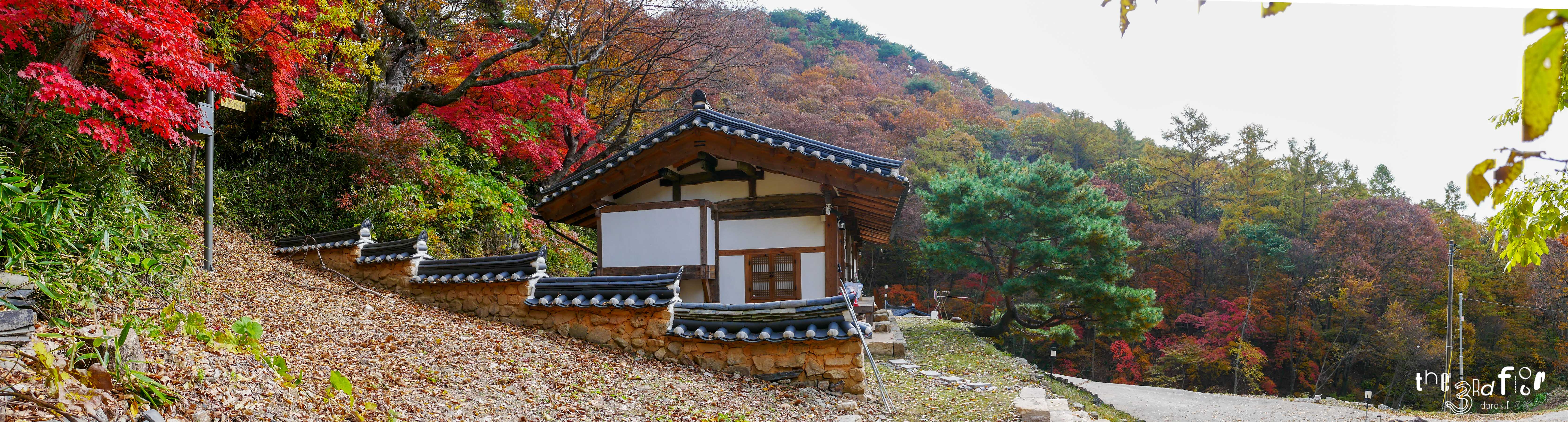 숲 바로 아래에 지어져 가을의 색깔이 건물 하나를 둘러싸고 있는 풍경이 매우 아름답다고 느껴졌다.