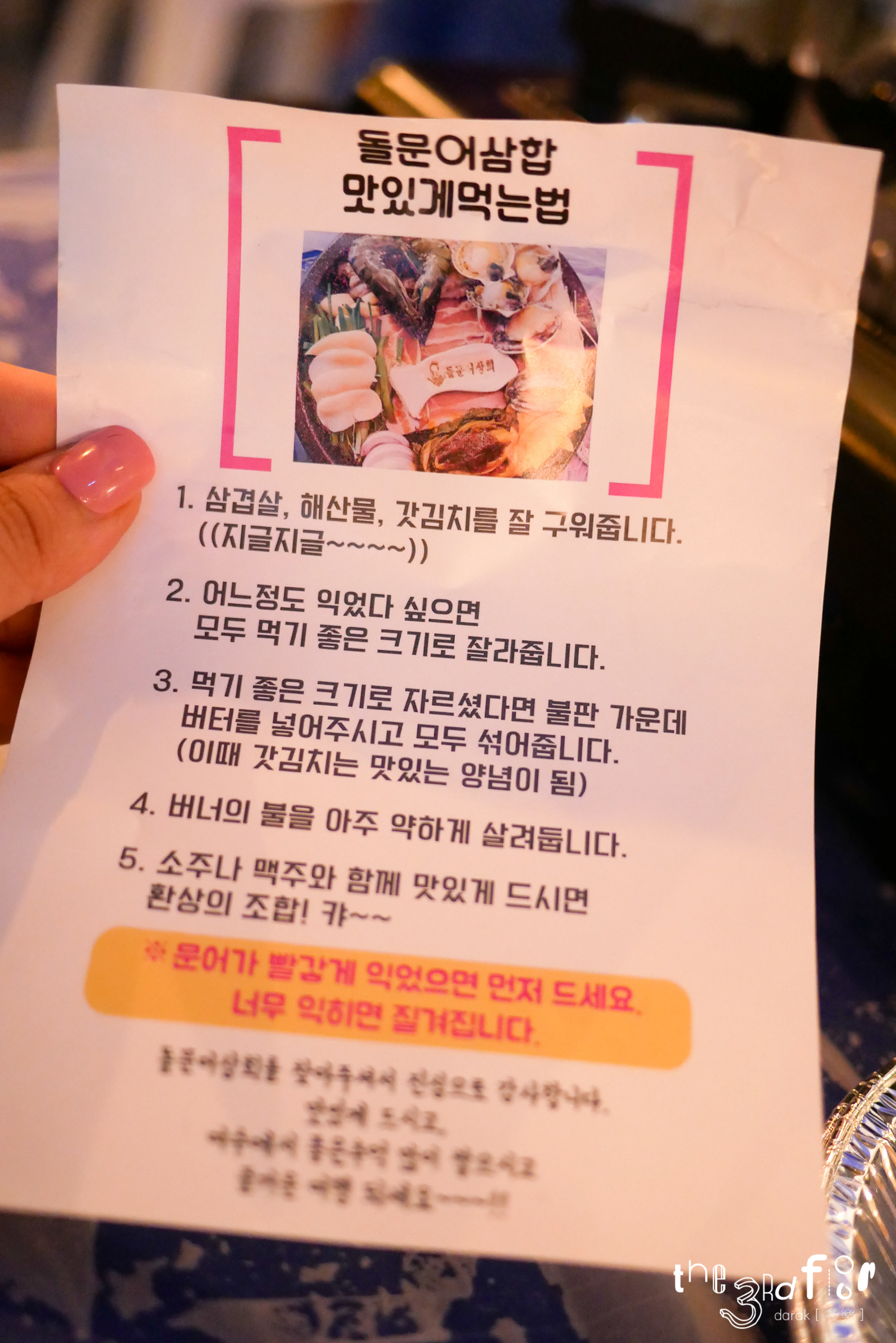 30분? 정도 기다렸다가 우리 차례가 와서 돌문어삼합을 먹으러 갔다.