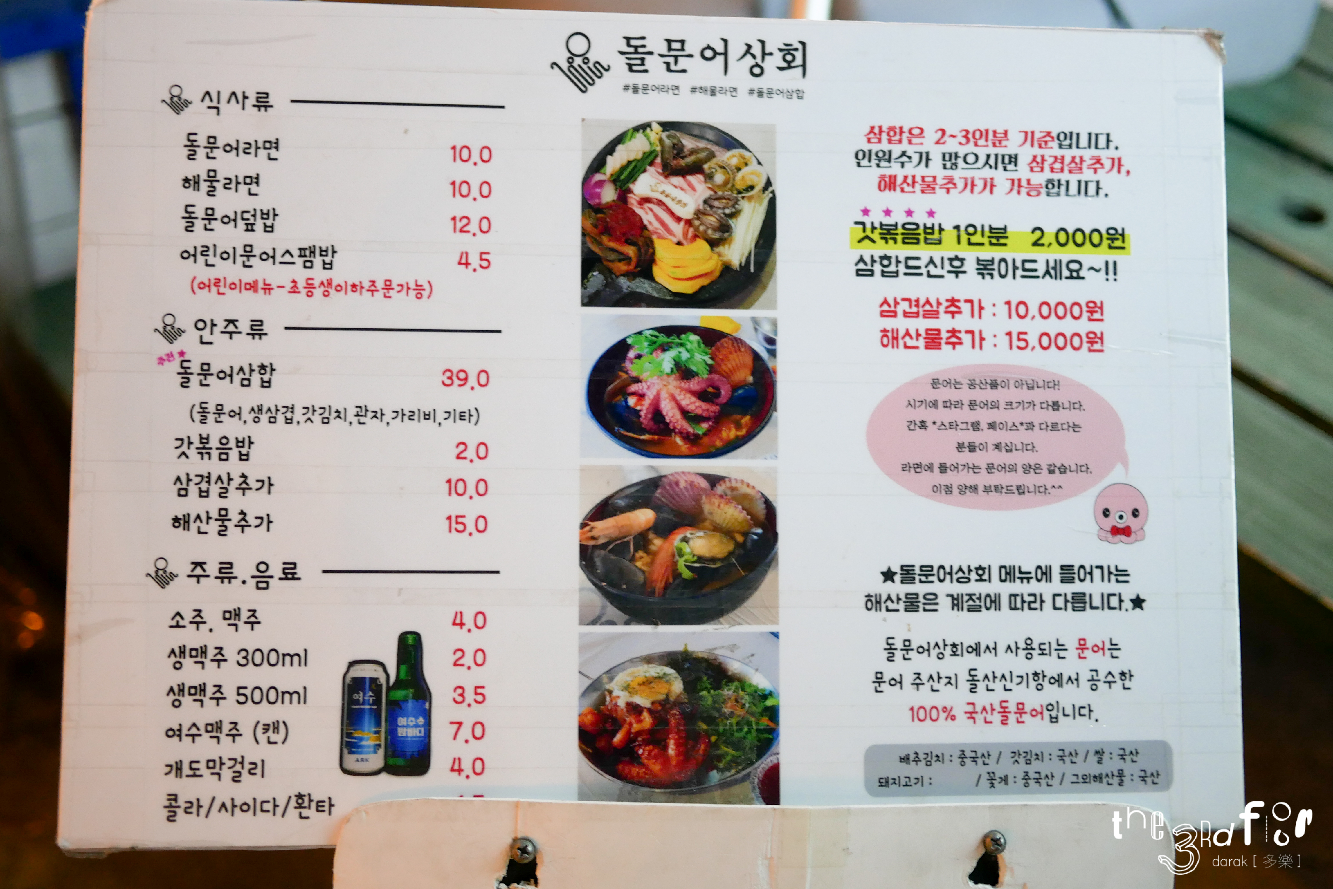 현재는 돌문어삼합 1~2인분이 45,000원이라고 한다. 사진 속 2019년엔 2~3인분 기분 39,000원이었는데...