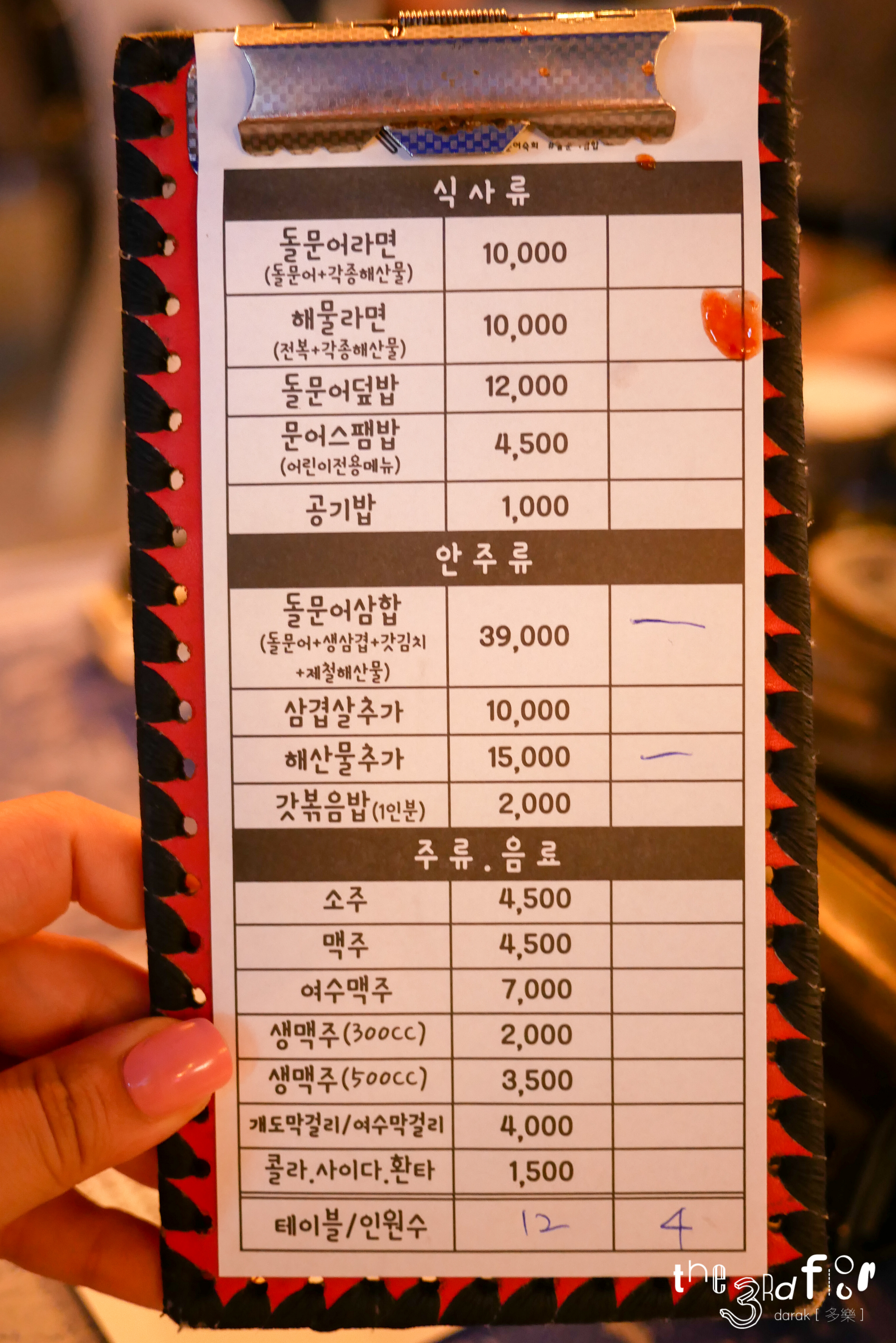 음식 빌지에 초장인가가 묻어있넼ㅋㅋㅋ