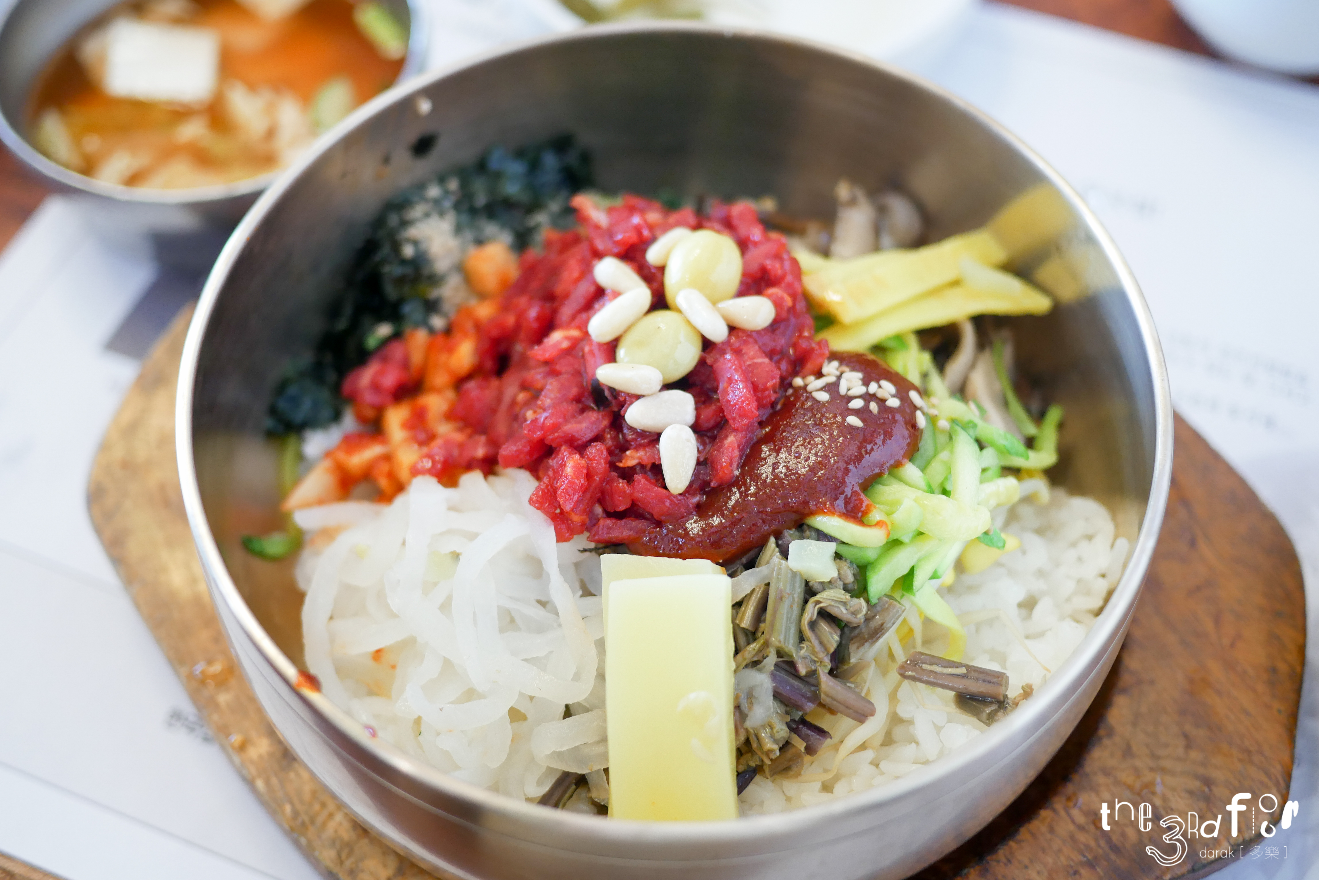 메뉴판에는 한국집의 비빔밥에는 계란 노른자의 비릿한 맛과 비빔밥 재료 본연의 맛이 섞이는 것을 피하기 위해 창업 이래 생계란 노른자를 비빔밥에 올리지 않는다고 쓰여있었다.