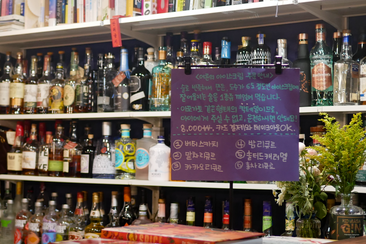 어른의 아이스크림이란, 술로 만든 아이스크림에 원하는 맛의 리큐르를 뿌려서 먹는 일종의 아포가토st 의 칵테일이다.