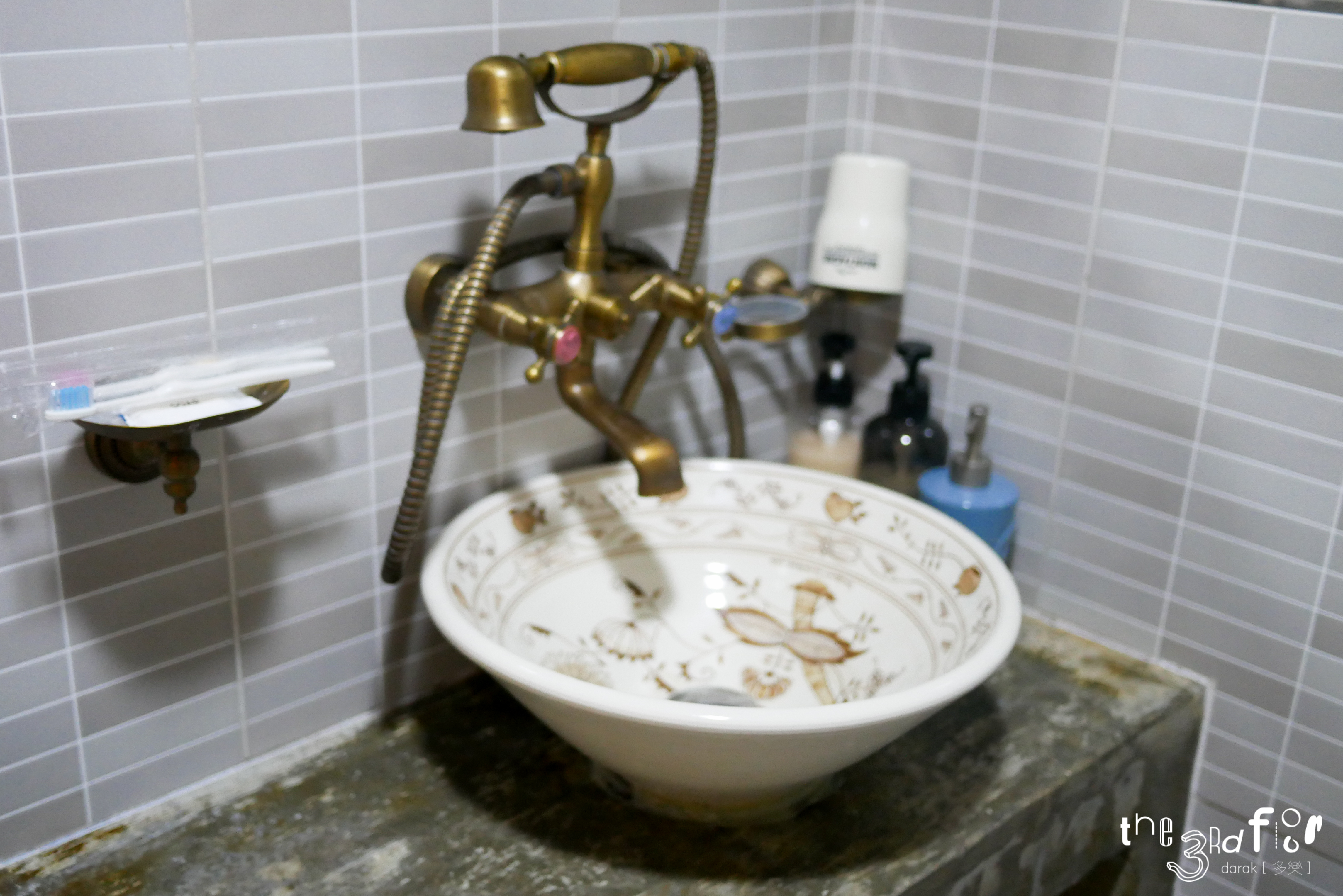 방마다 딸려있던 화장실은 이런 례에술적인 느낌이다. 세면대가 이뿨. 왼쪽 공간에 샤워기가 달려있다.