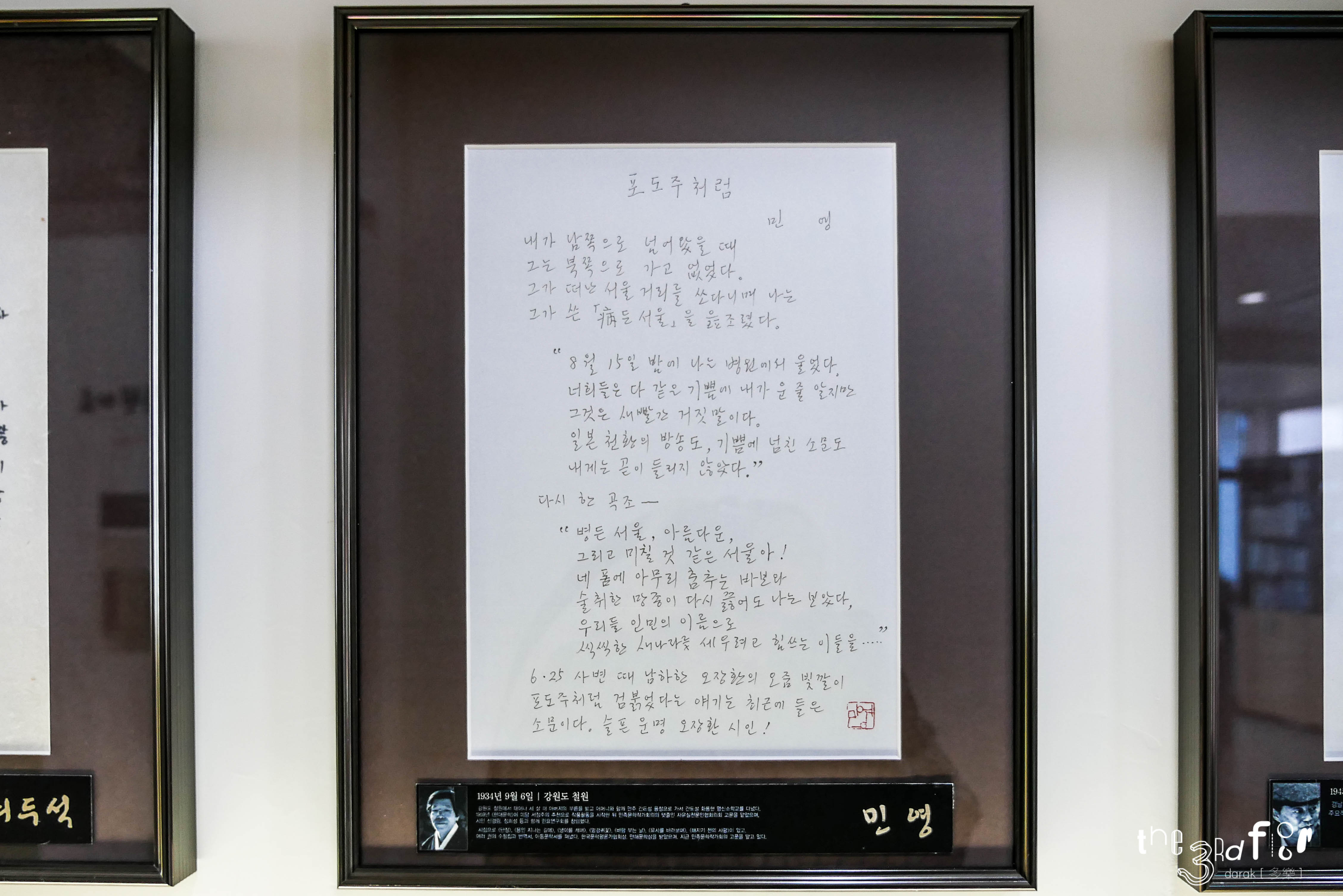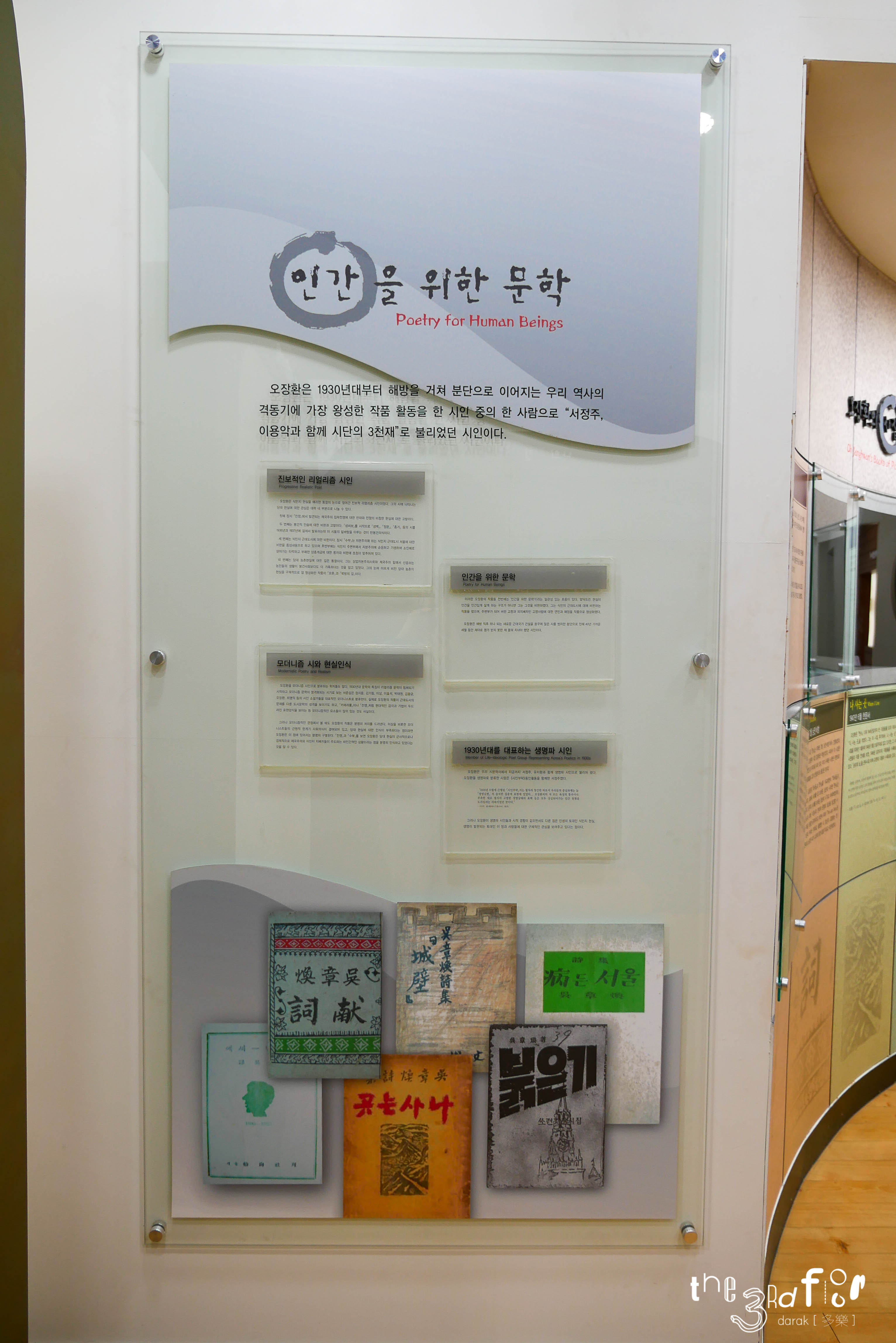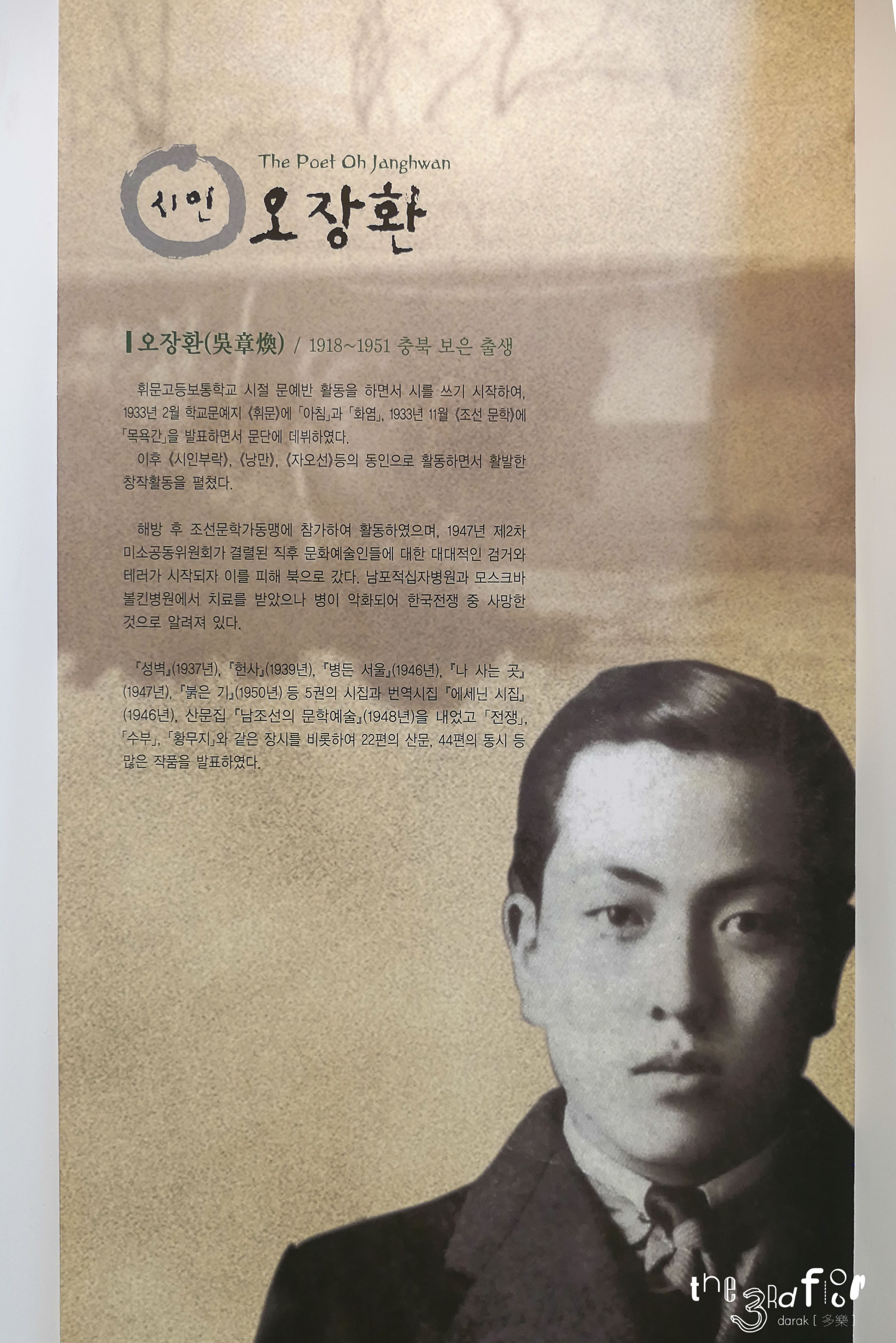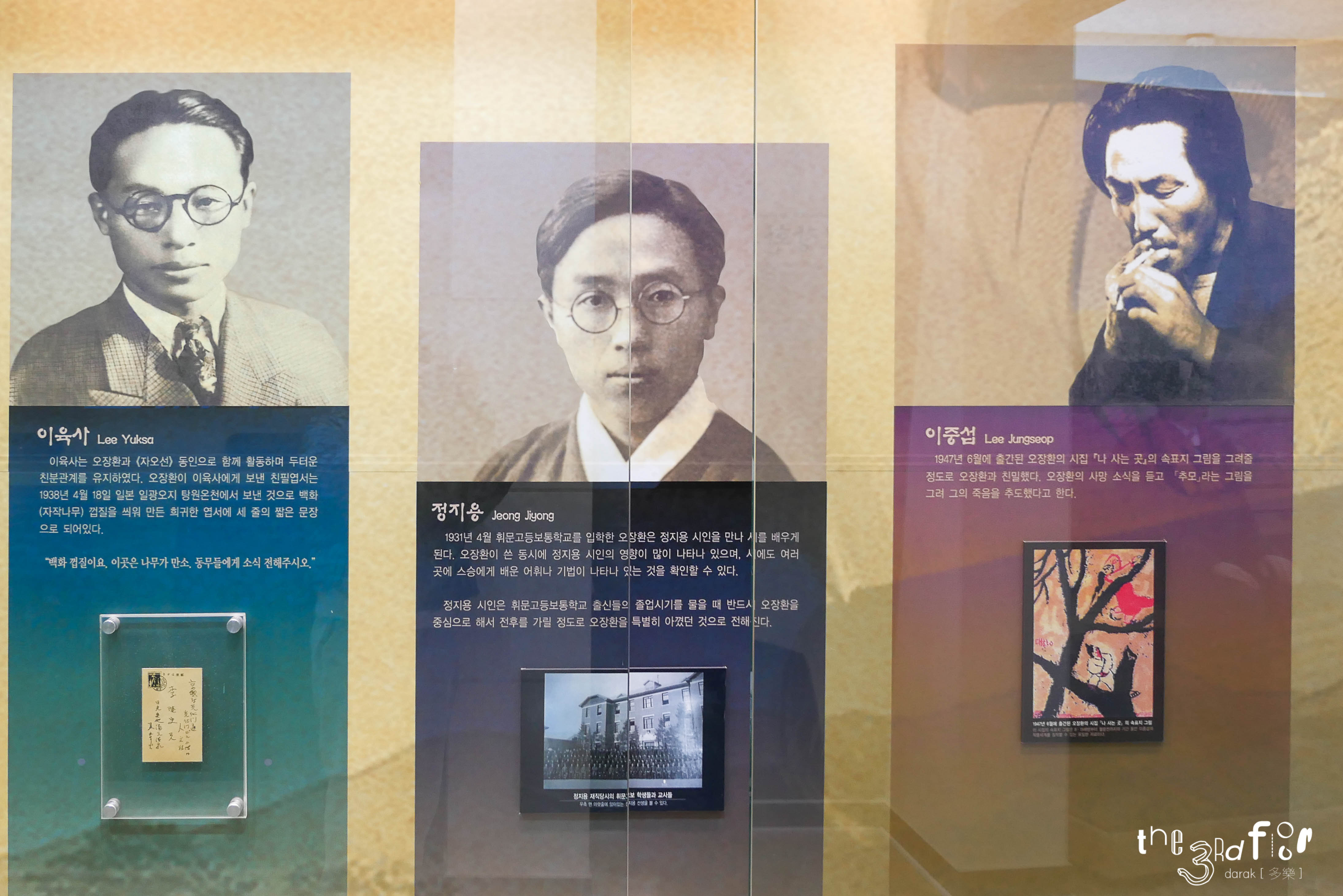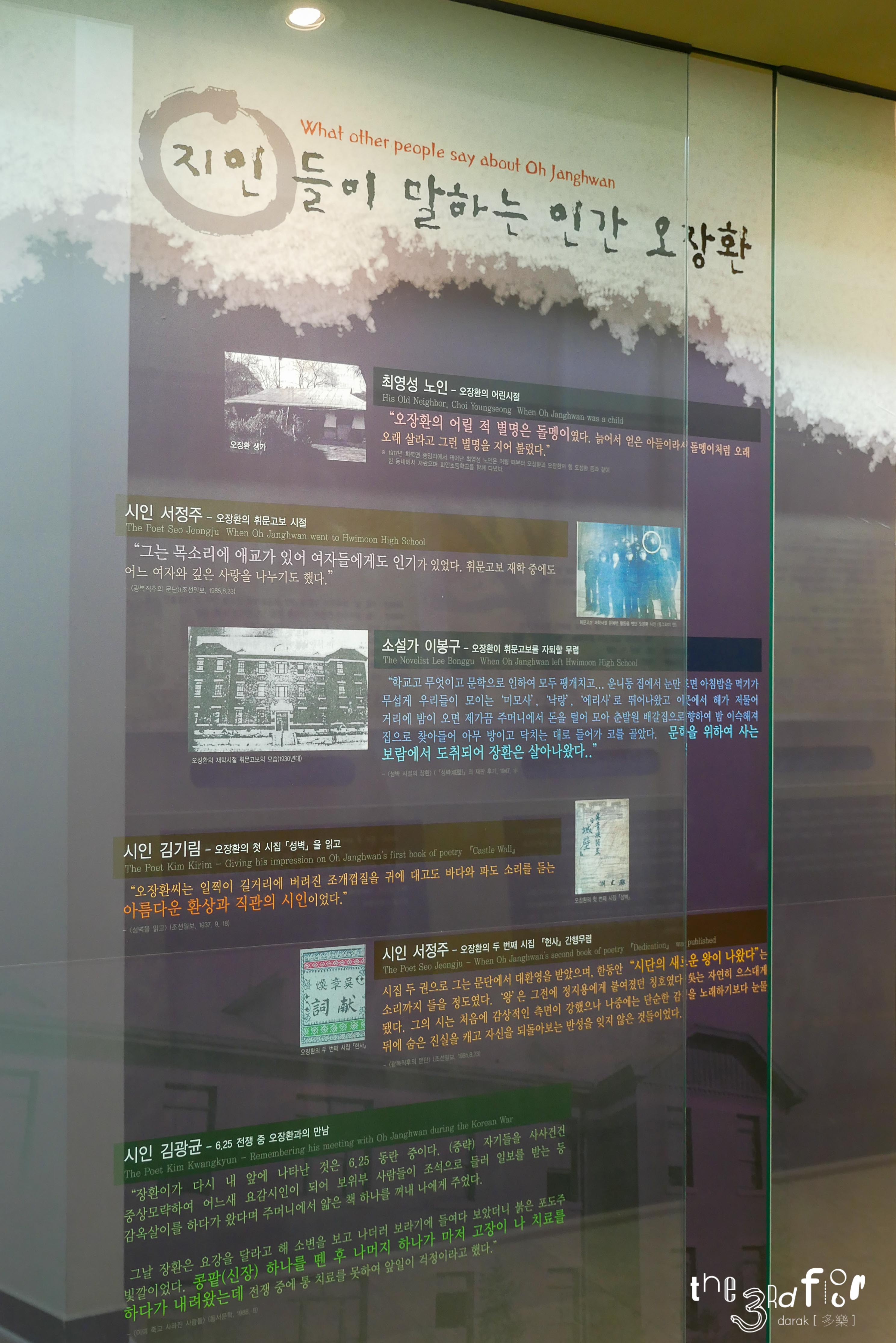 그 외 문인들이 직접 쓴 오장환 시인의 작품, 오장환 시인에 대한 그들의 생각이 벽면에 붙여져 있어 꼼꼼히 잘 읽어보았다. 다들 글씨가 참 멋들어진다는 생각이...