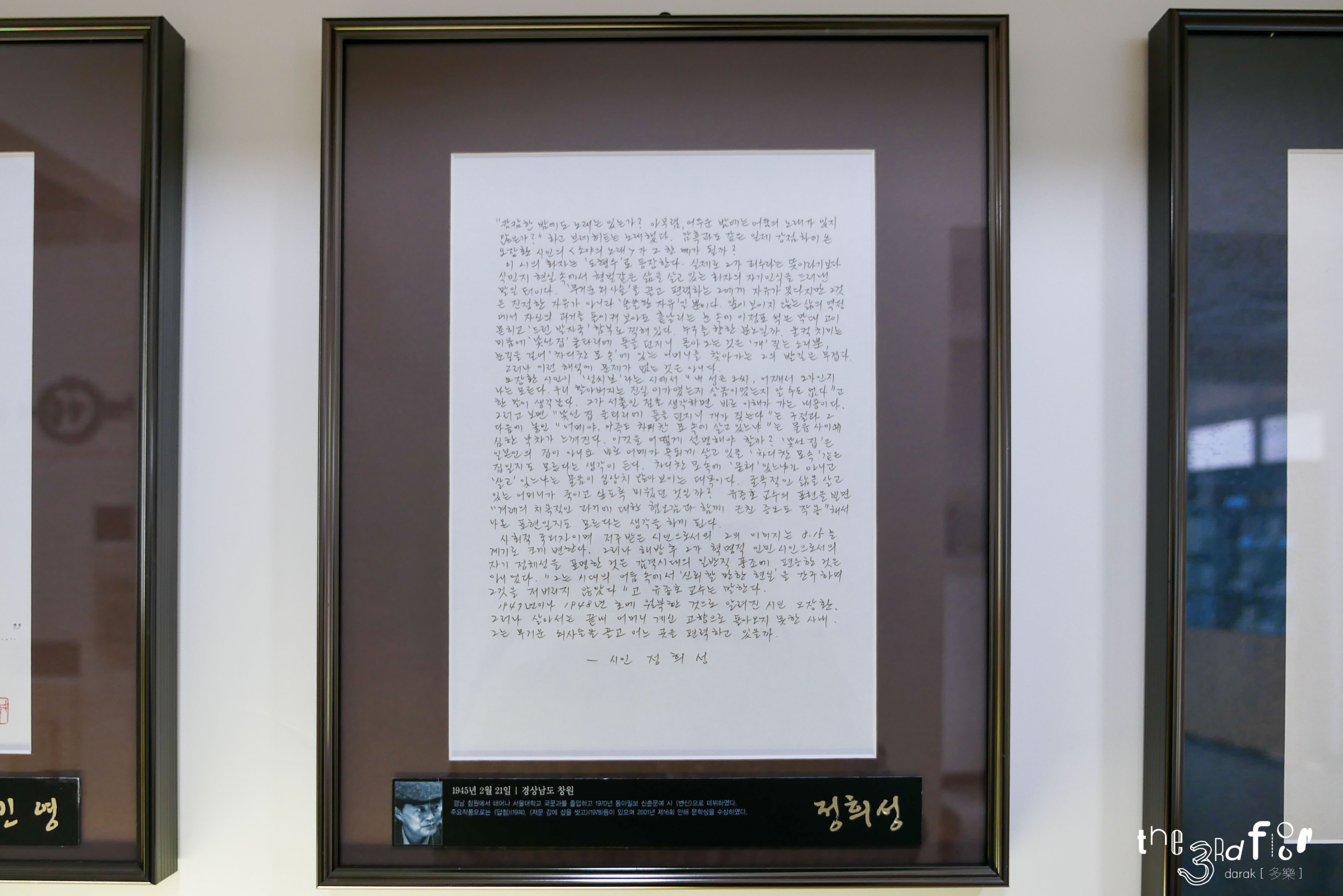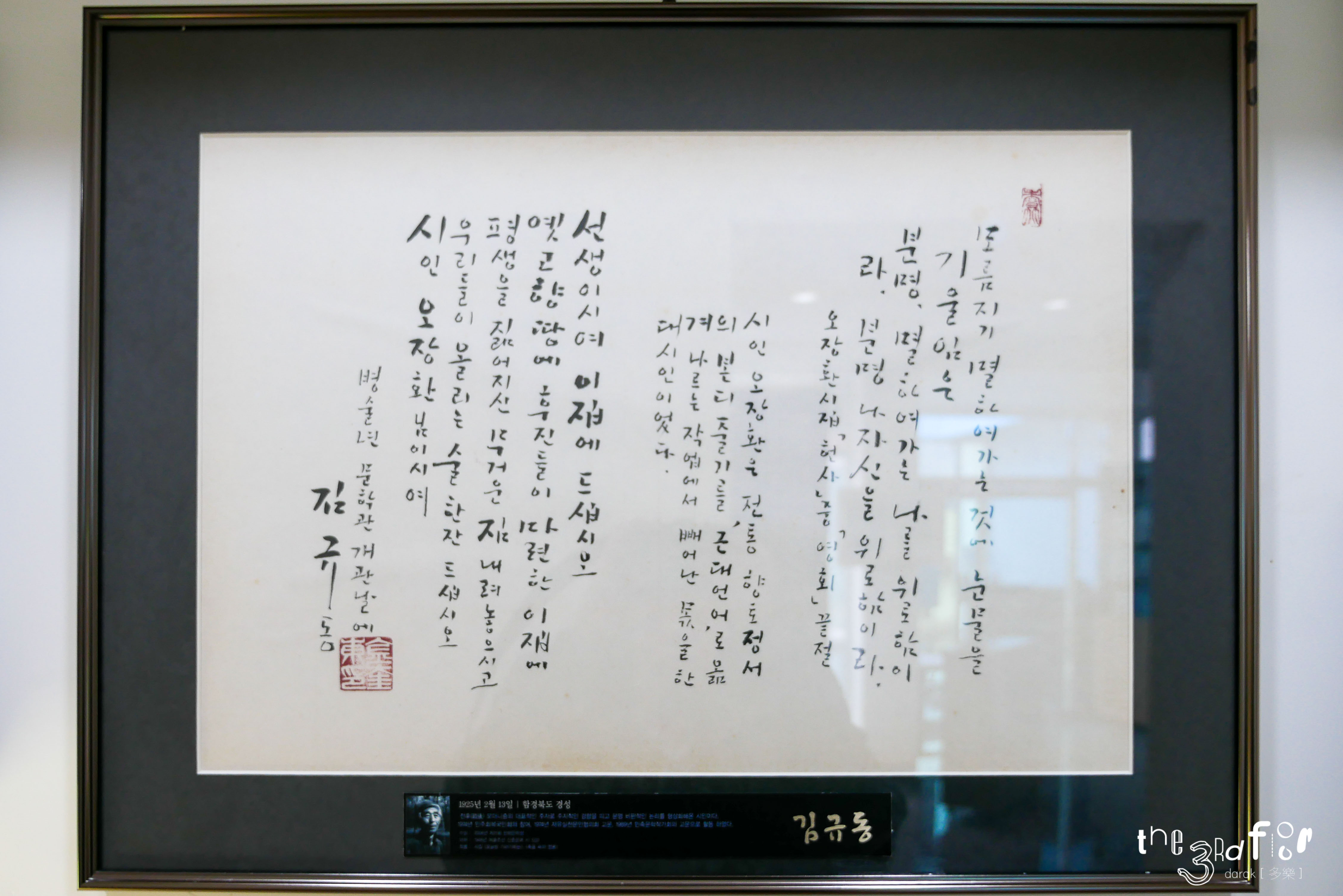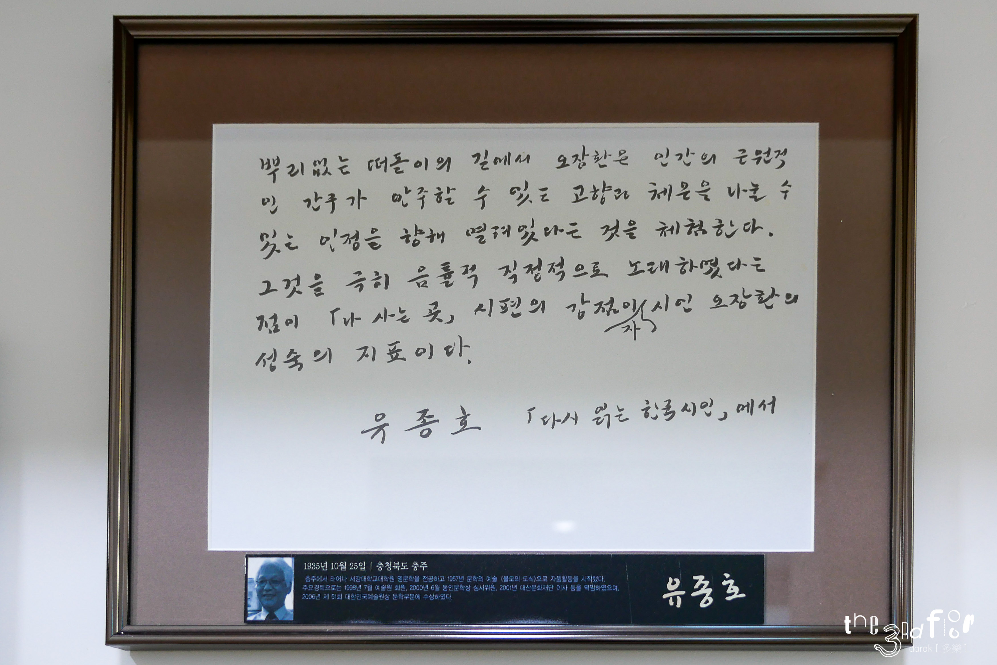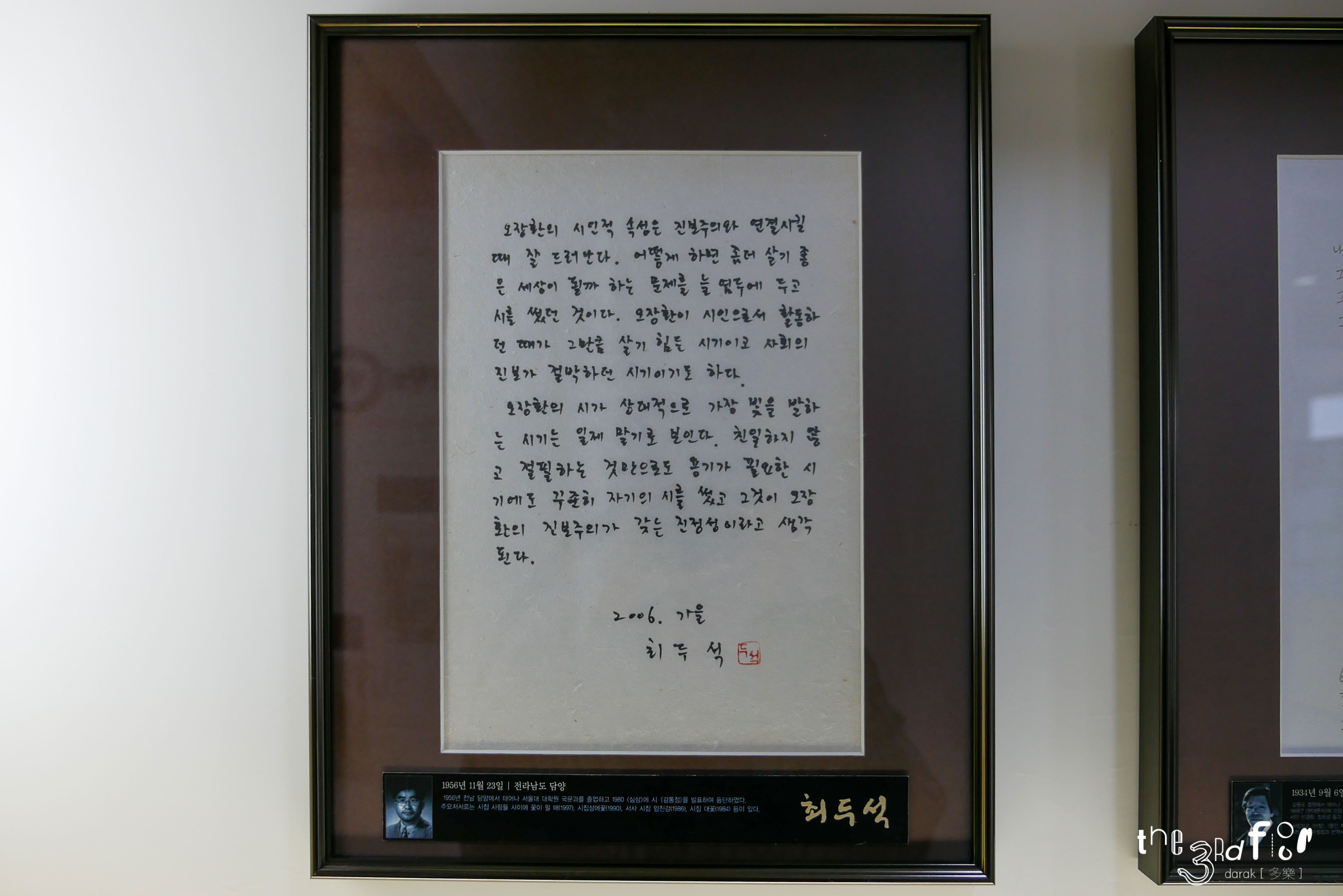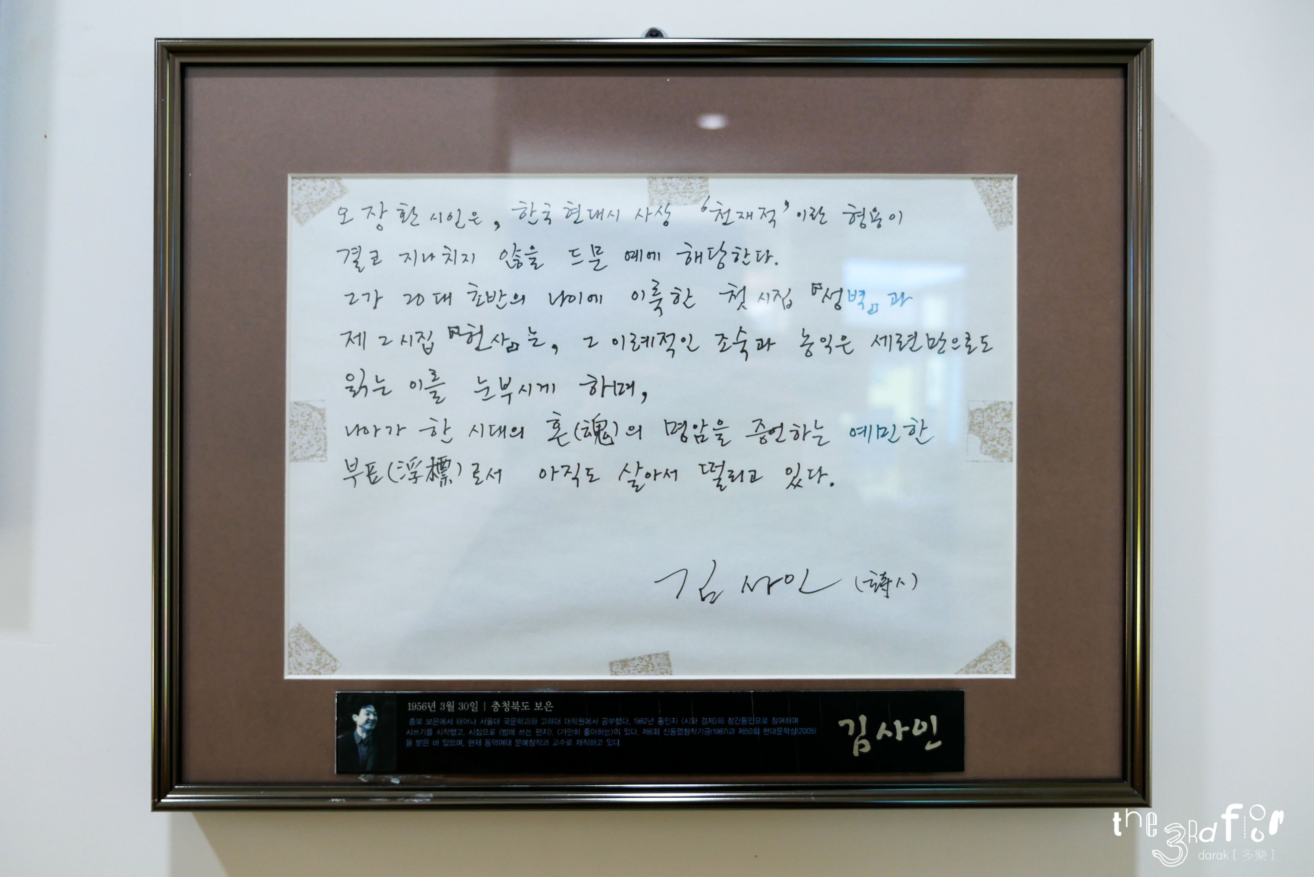 그 외 문인들이 직접 쓴 오장환 시인의 작품, 오장환 시인에 대한 그들의 생각이 벽면에 붙여져 있어 꼼꼼히 잘 읽어보았다. 다들 글씨가 참 멋들어진다는 생각이...