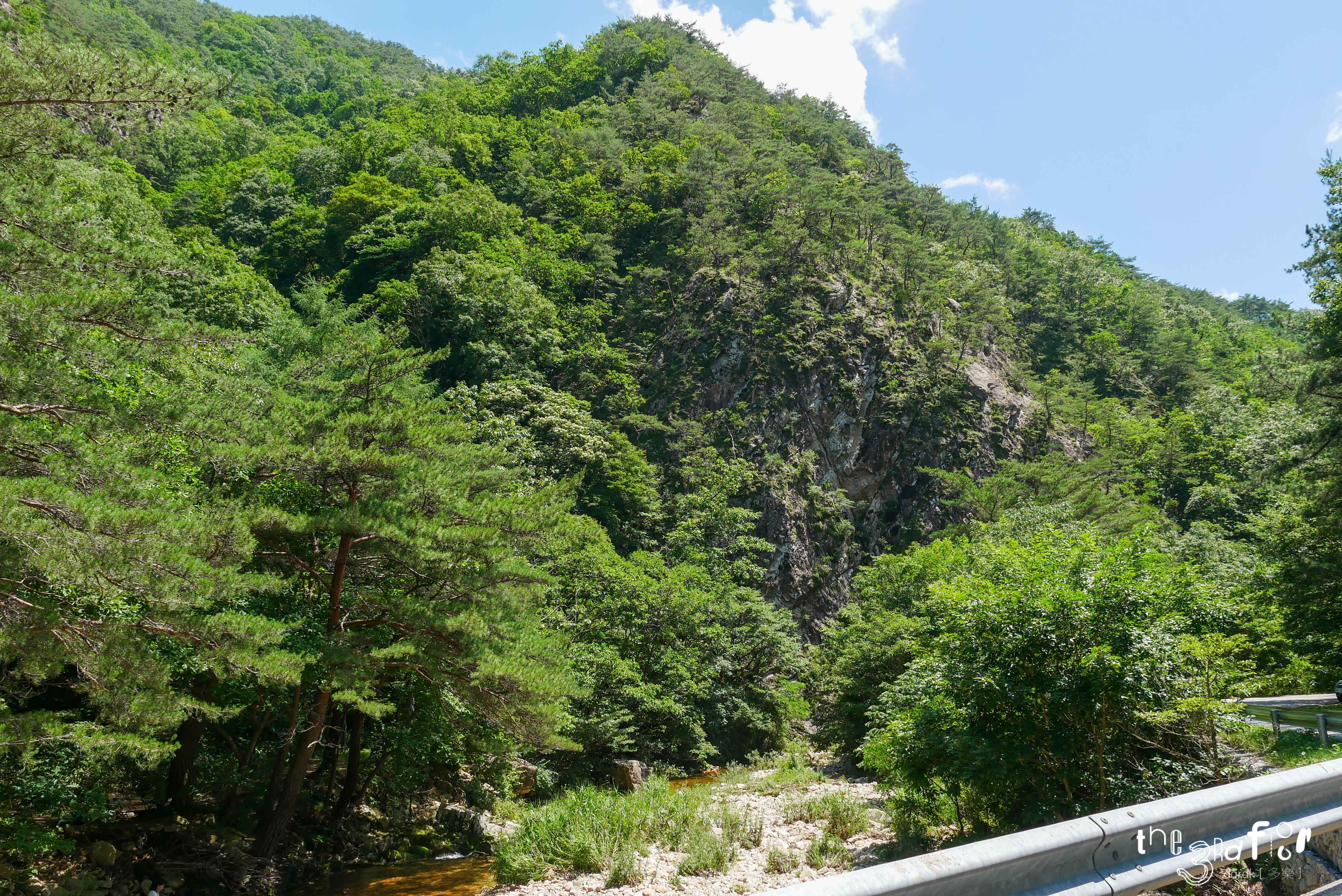 이쪽은 하류쪽이라 물이 조금 없는 편이다. 다리 안쪽으로 더 들어가면 공중화장실이 있는 깊은 계곡이 나온다.