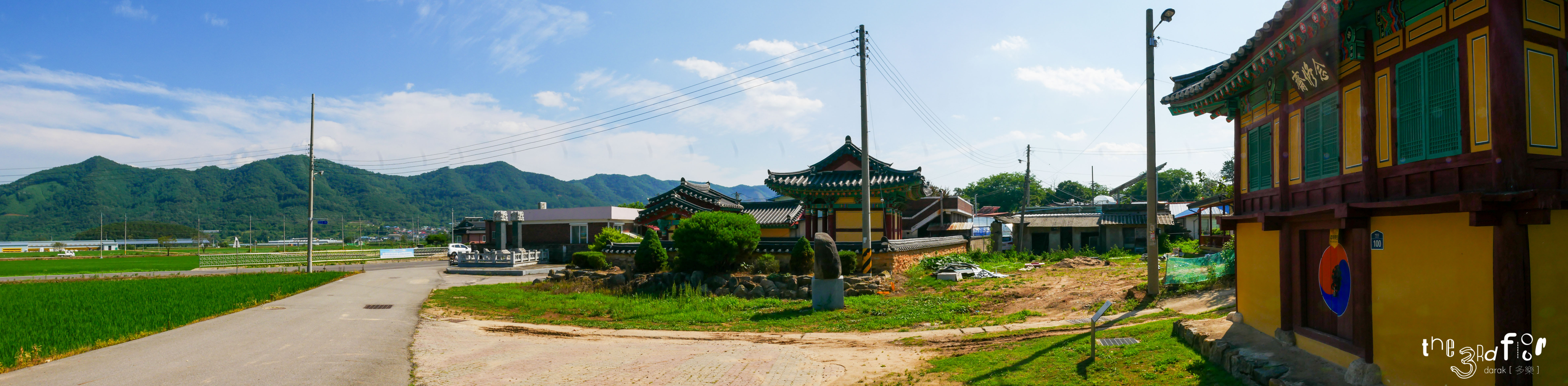 논밭 바로 뒤 쪽 마을 입구에 건물이 세워져 있어서 독특하게 느껴졌다.
