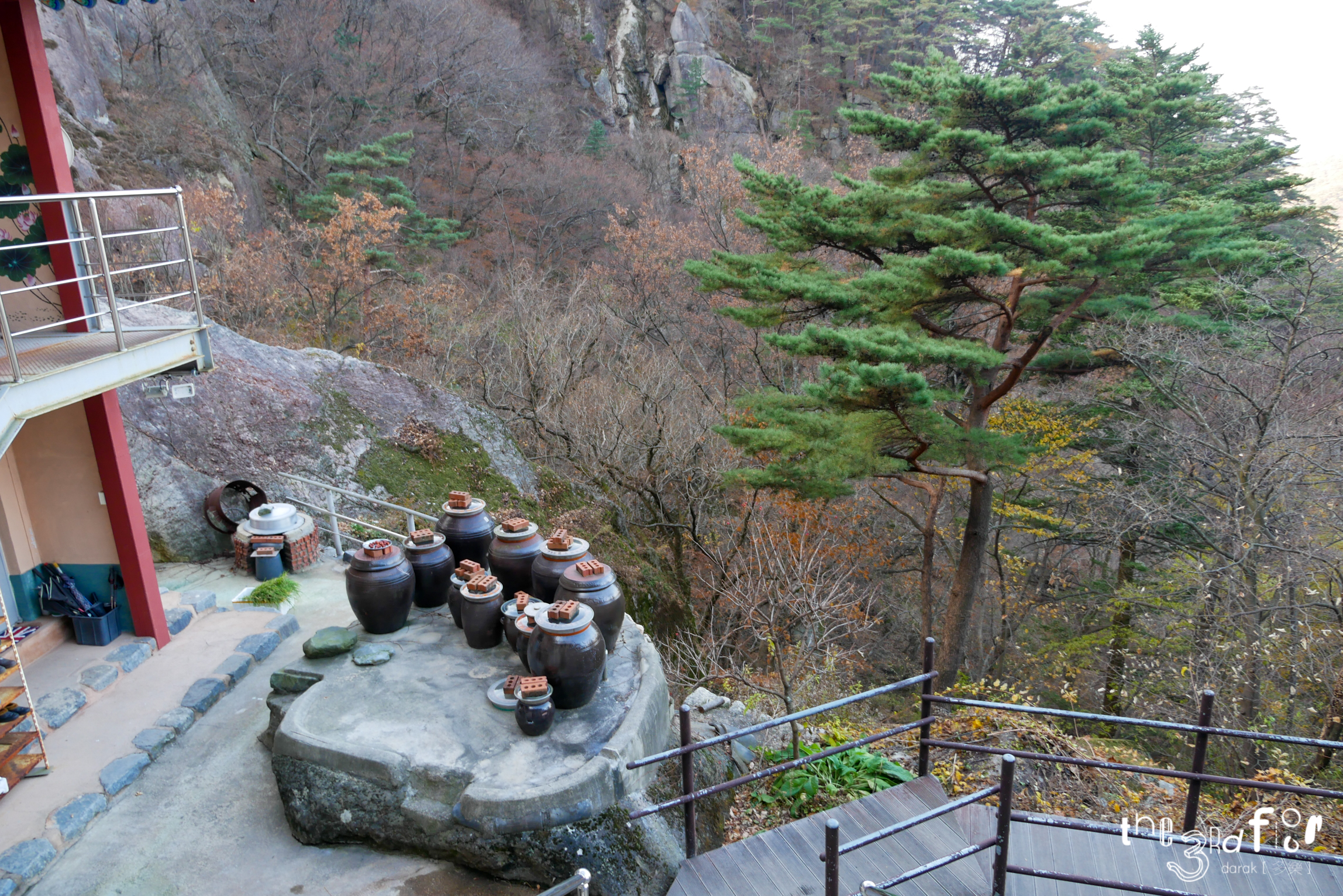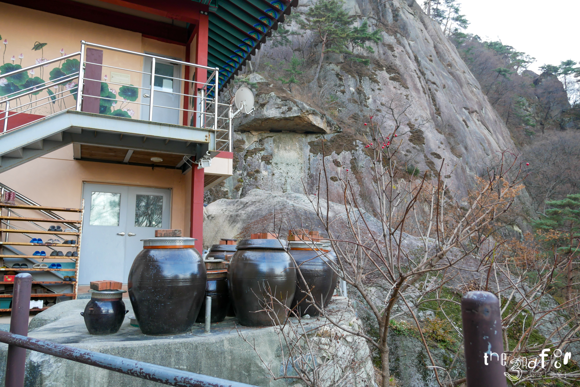 옹기종기 장독대들. 사람이 거주하고 있다는 걸 알 수 있다.
