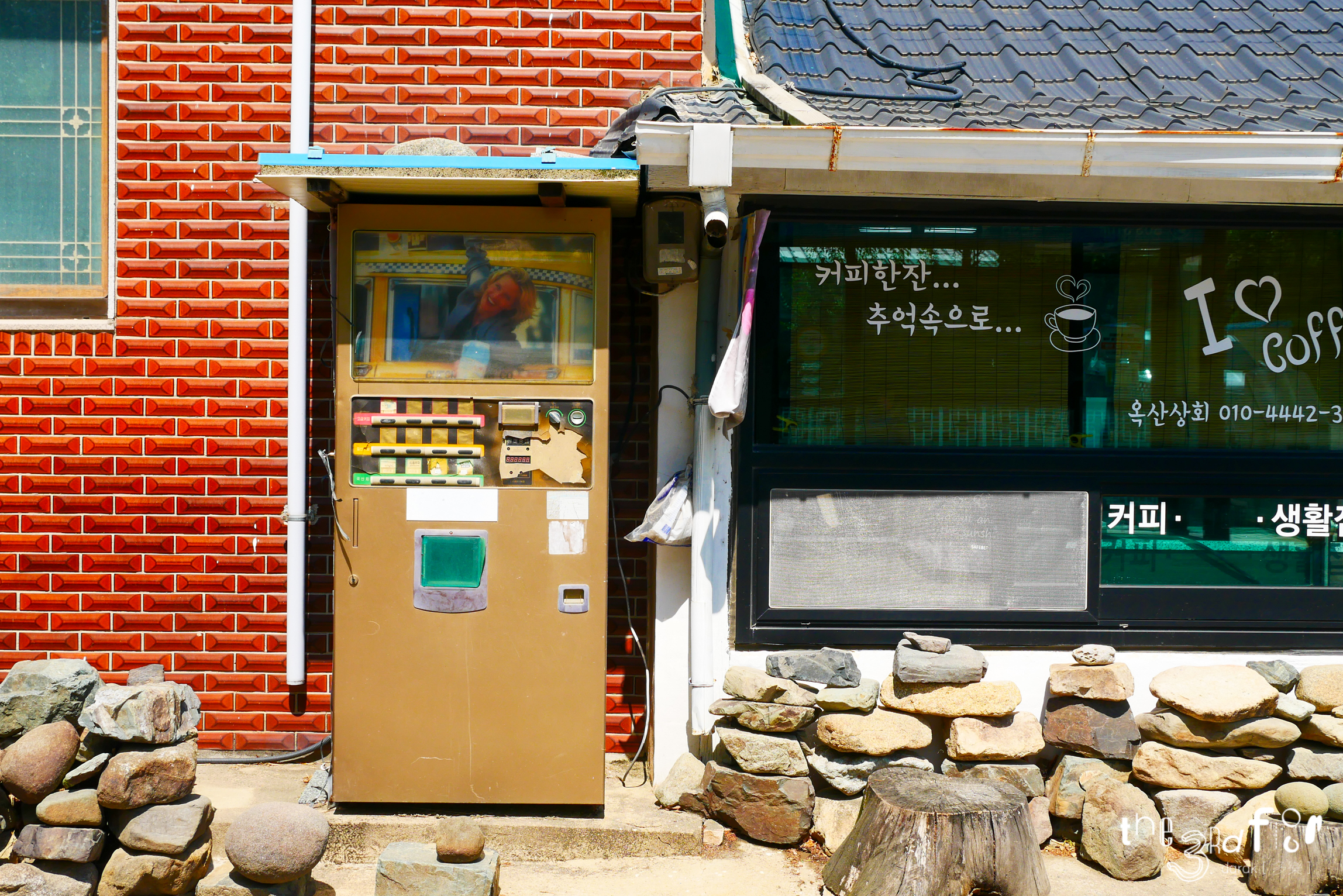 길 건너편에 보이는 옥산상회 커피샵에 아주 오래되어 보이는 커피 자판기가 보여서 잠깐 향수에 젖음.