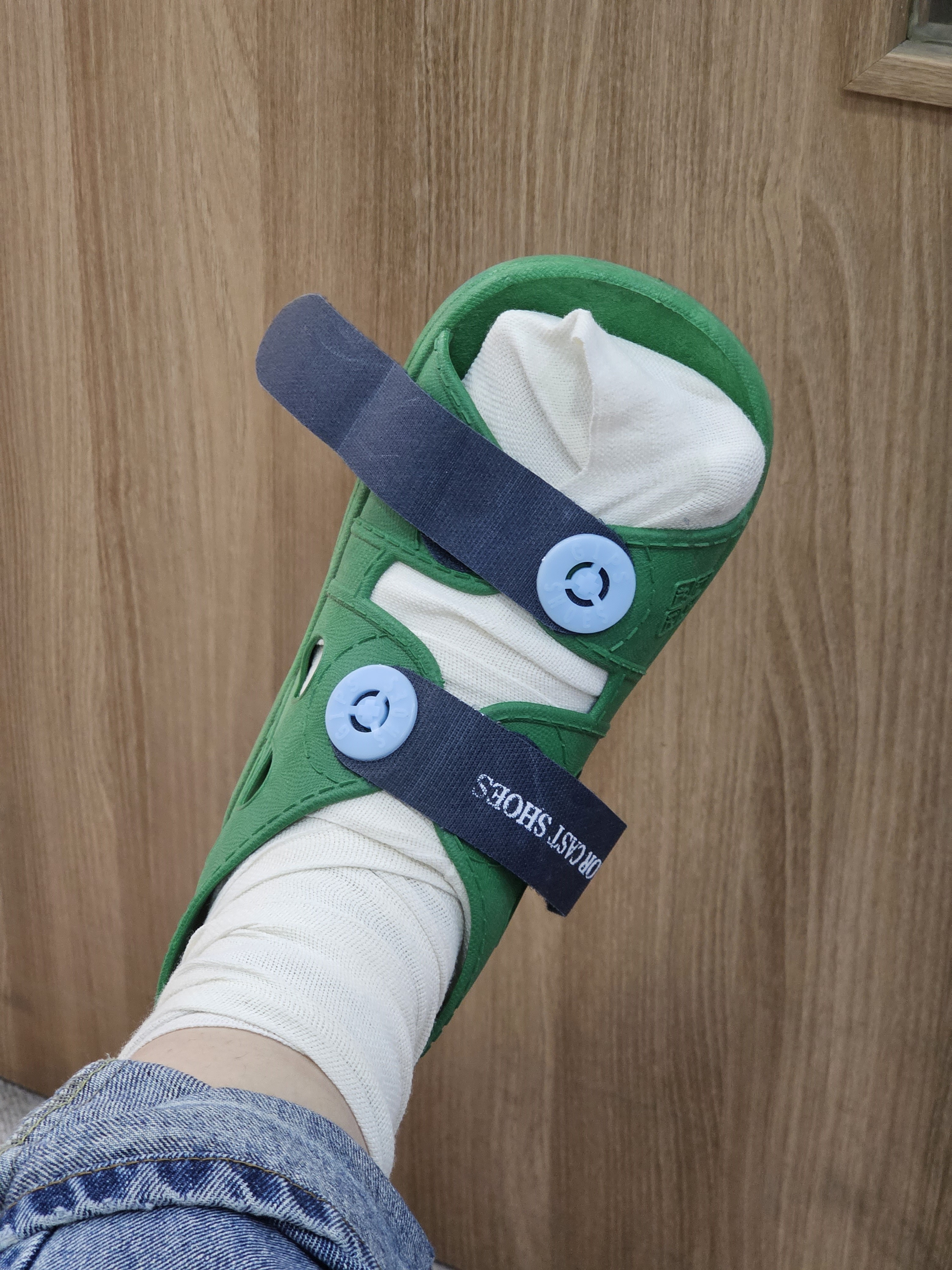 나중에 귀국하고 보니 발목인대를 다친 거라 2주 정도 반깁스를 했었다.