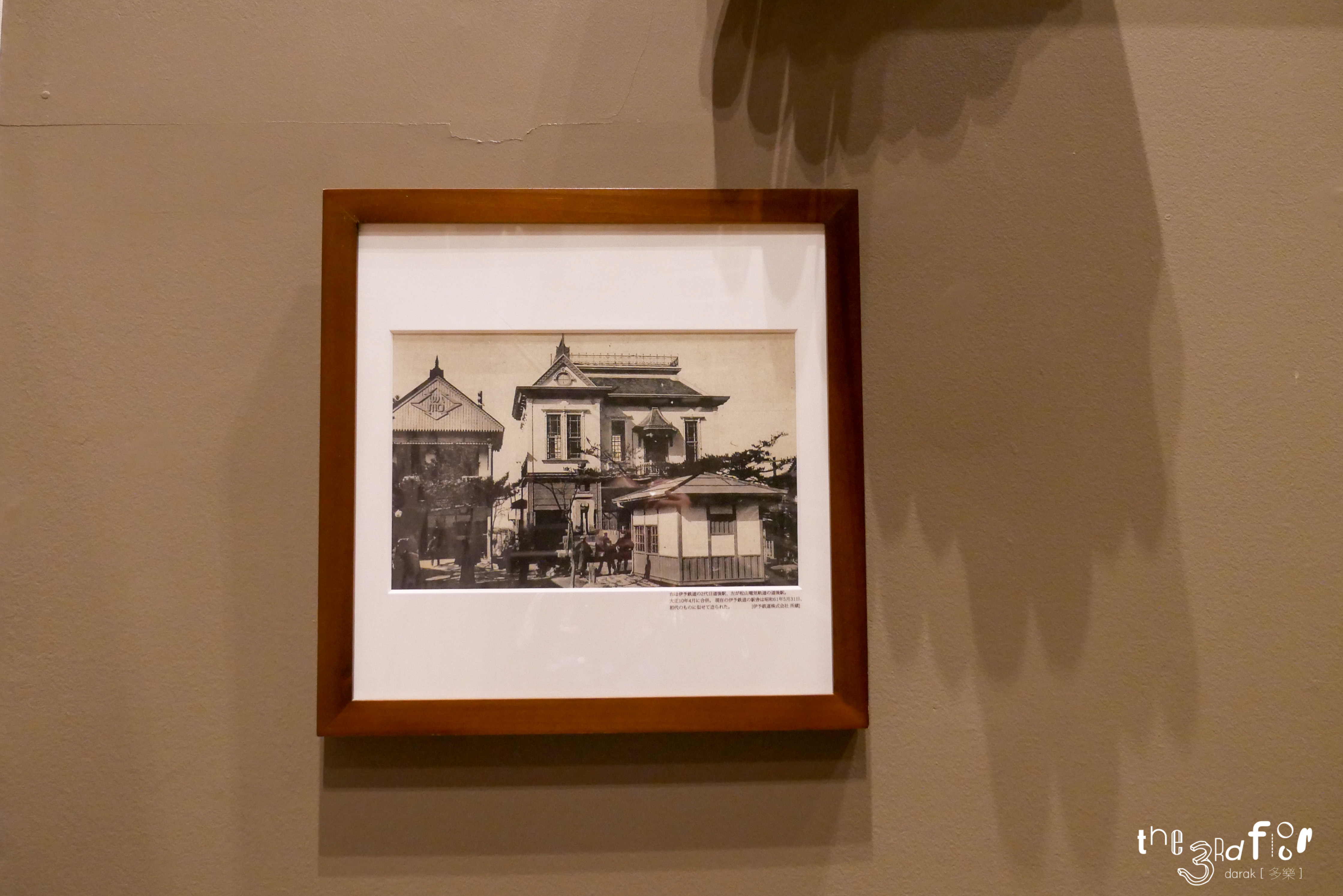 옛 도고온센 전철역의 모습과 예전 이 건물의 사진을 걸어놓았다.