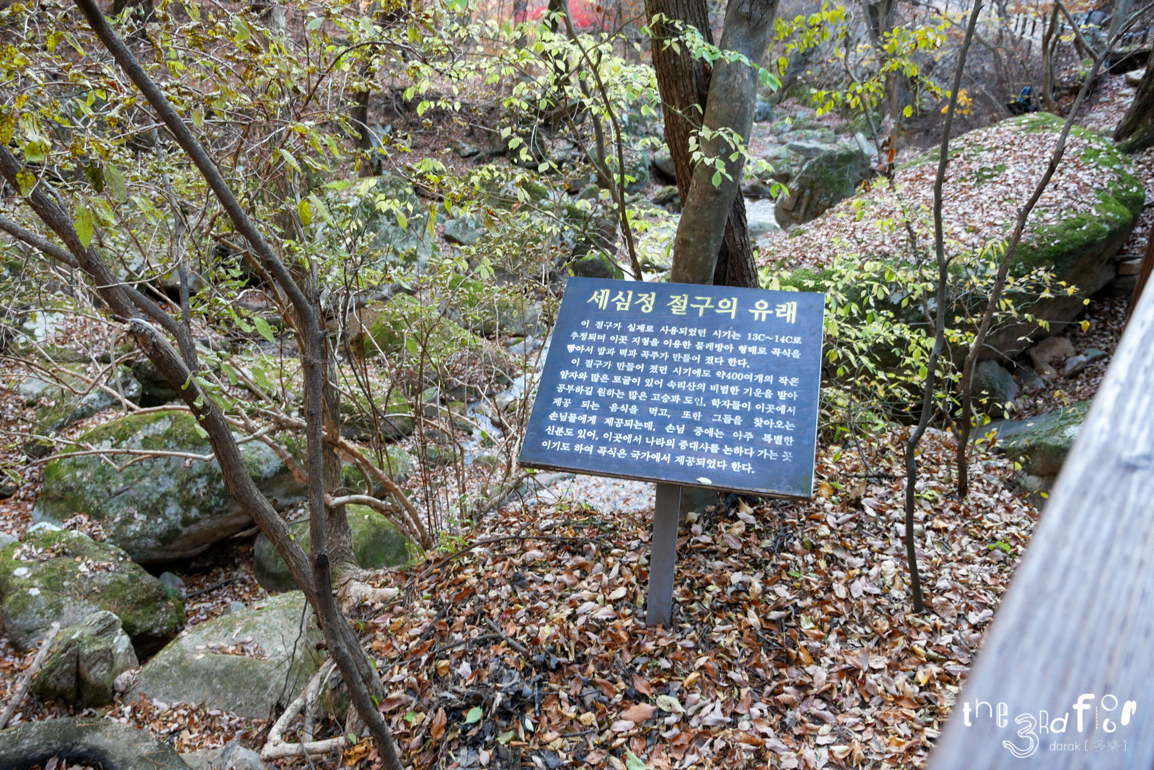 어느덧 세심정에 도착. JS는 파전을 매우매우 먹고 싶어했으나 배가 하나도 꺼지지 않은 관계로 바로 속리산면 마을로 내려가기로 했다. (엄청 아쉬워 하더라는...ㅋㅋㅋ)