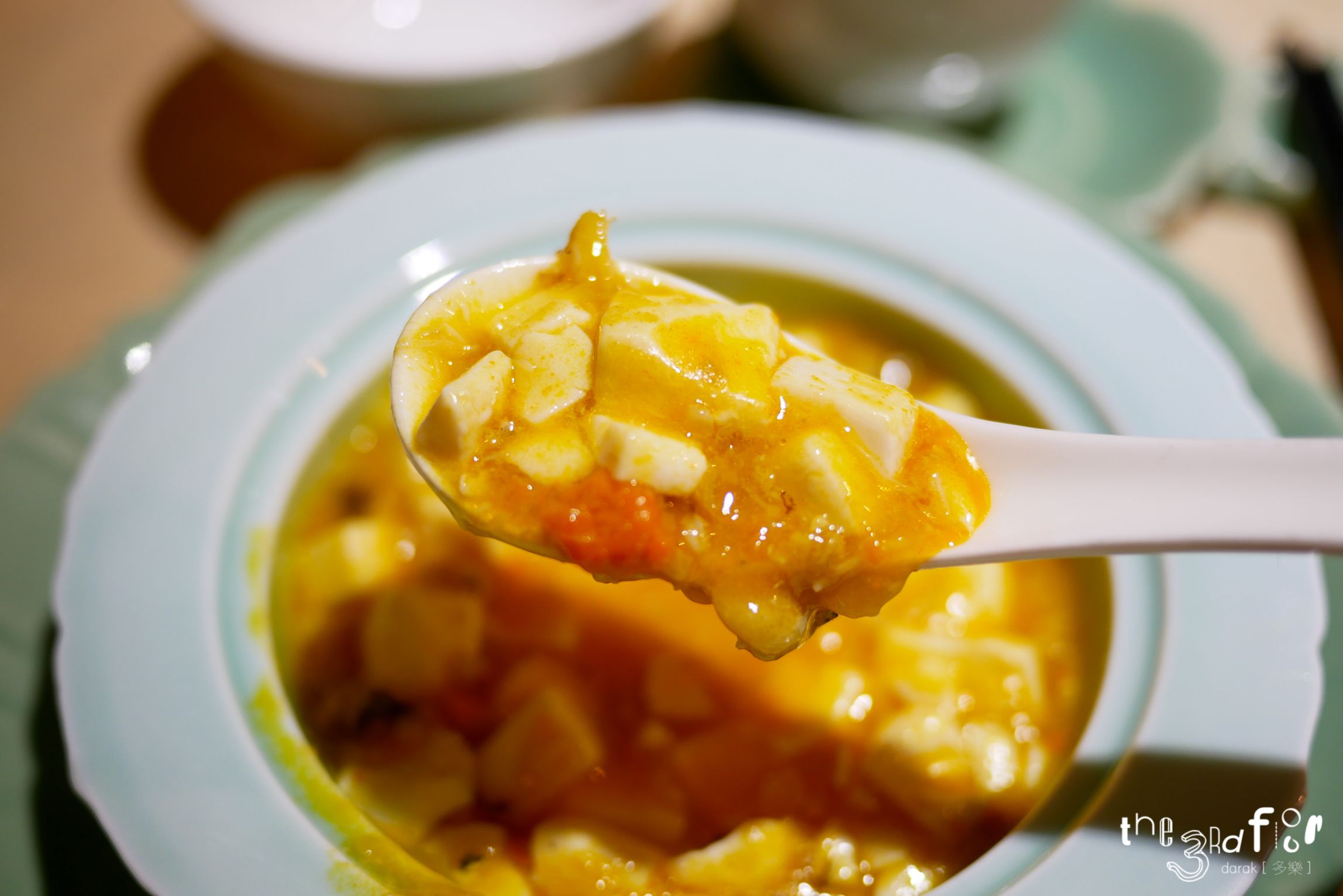 마파두부처럼 생겼지만 게의 알과 함께 조리한 두부요리.