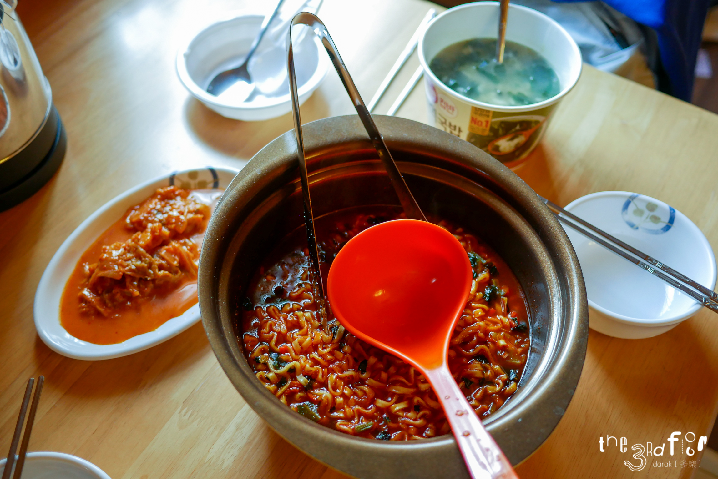 스노보드를 신나게 즐기고 다음날 아침은 편의점에서 사온 진짬뽕 미역국밥을 먹었다.