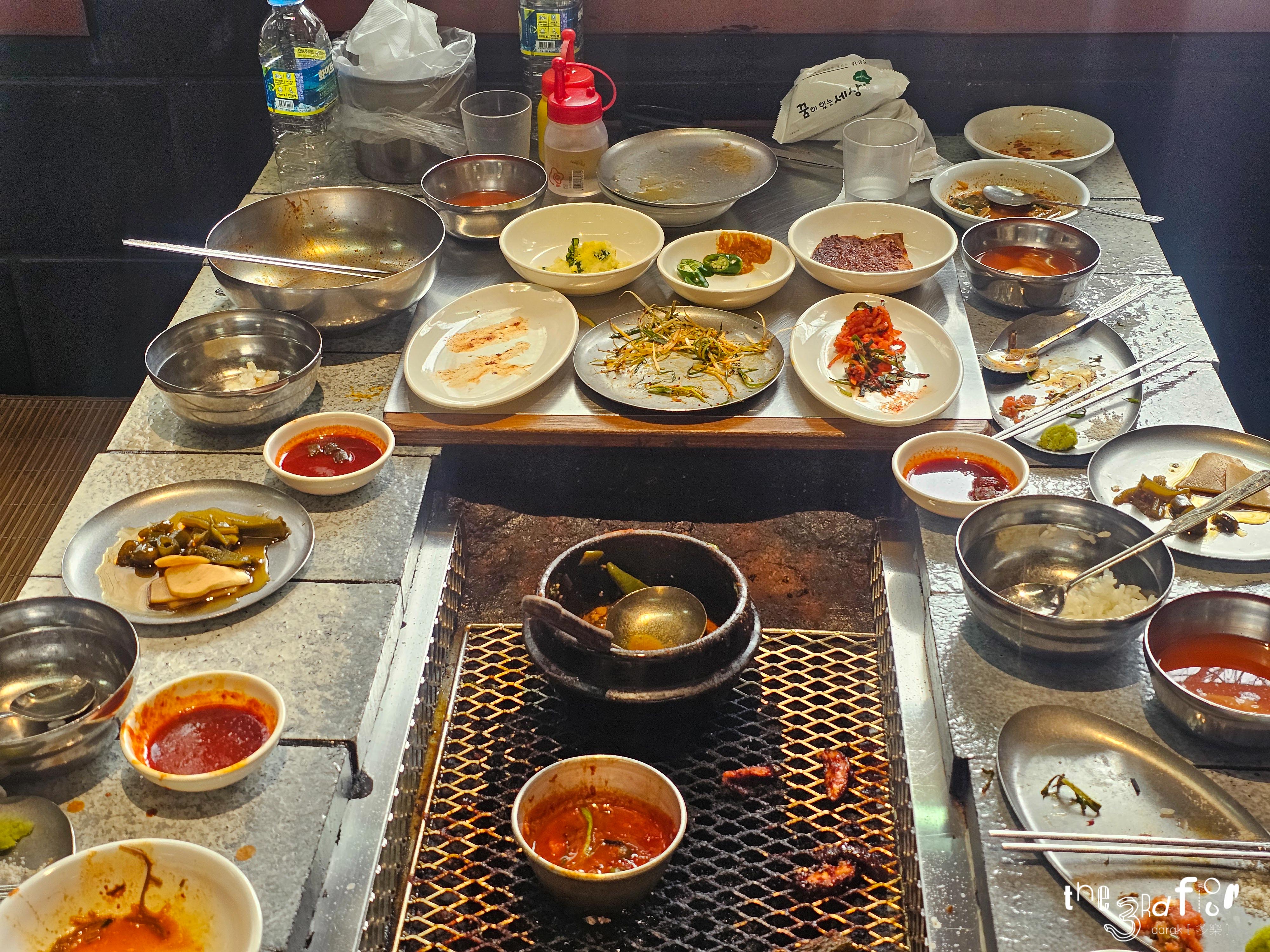 재래식 소금구이 1.5접시, 고초장 양념구이 아마도 2인분, 된장찌개와 냉면, 공기밥 정도를 시켰다.