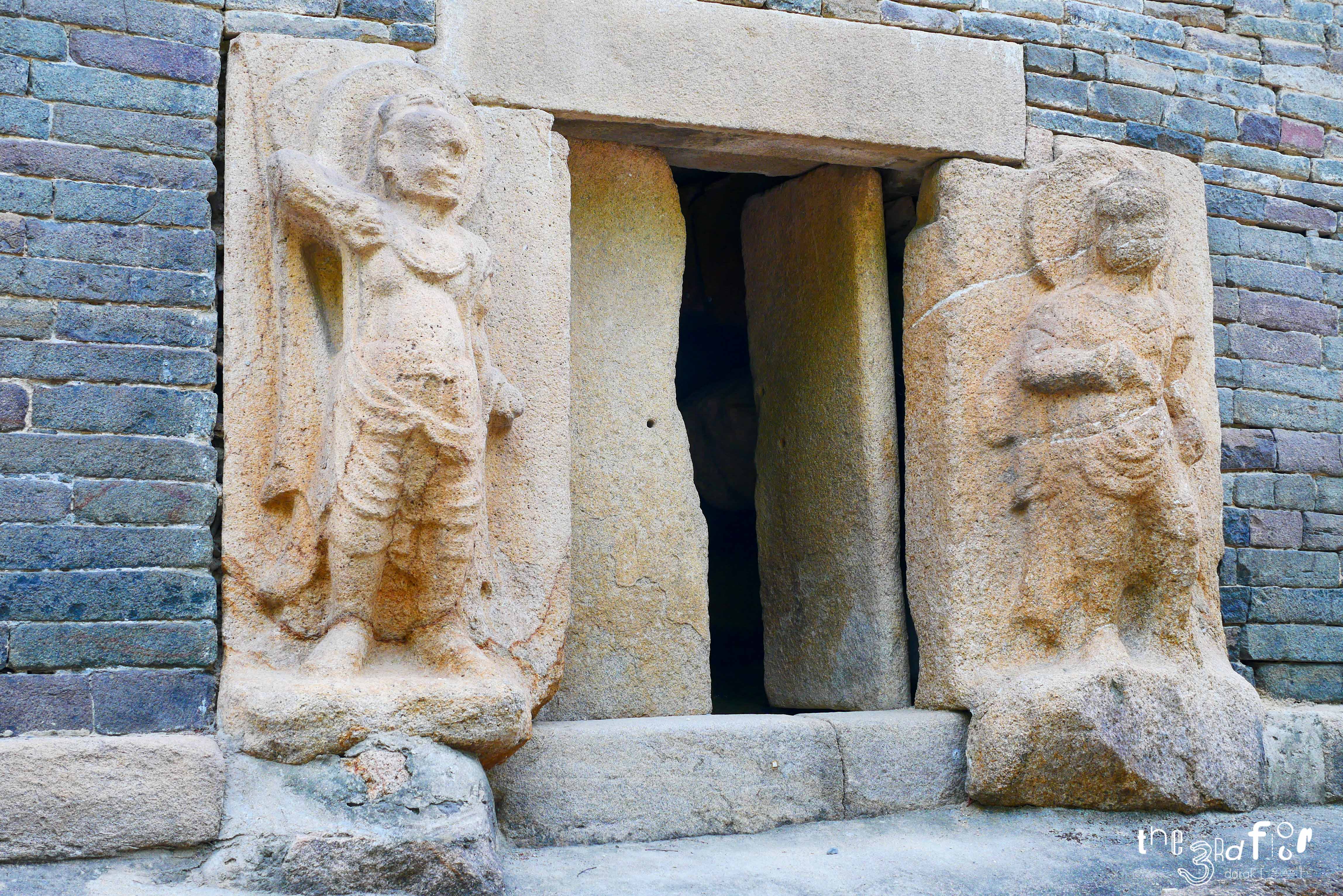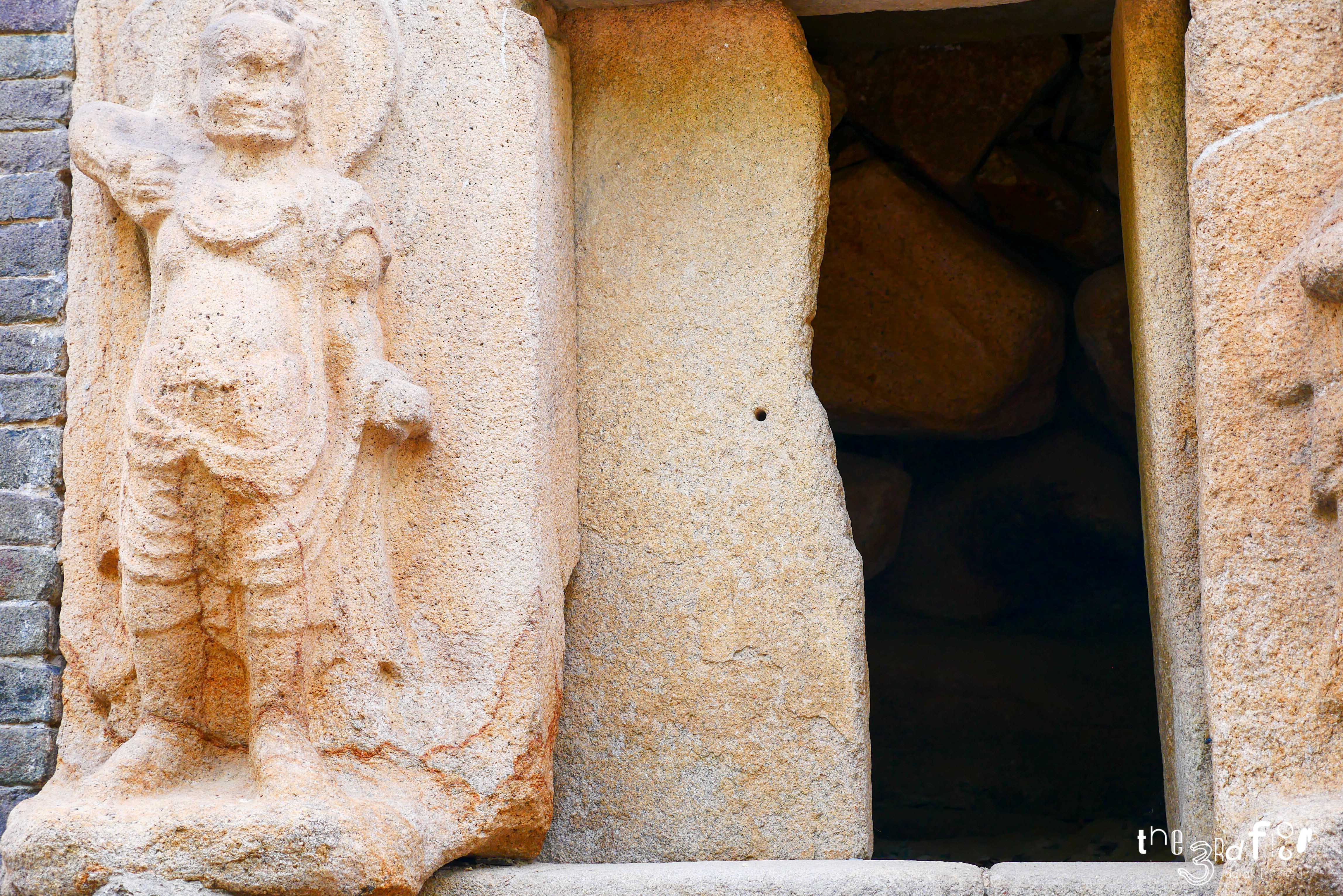 모전석탑의 1층에는 감실을 두고 네 면에 드나들 수 있도록 출입문 형태로 만들어 그 양 옆에 불법을 수호하는 금강역사(인왕상)을 조각했다. 7세기에 새겨진 조각들이 아직까지도 생동감 있어보인다.