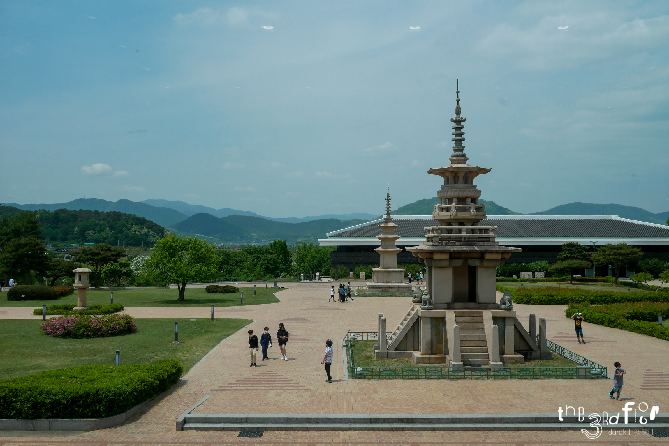 창문밖으로 다보탑과 석가탑(모조품) 구경하기.