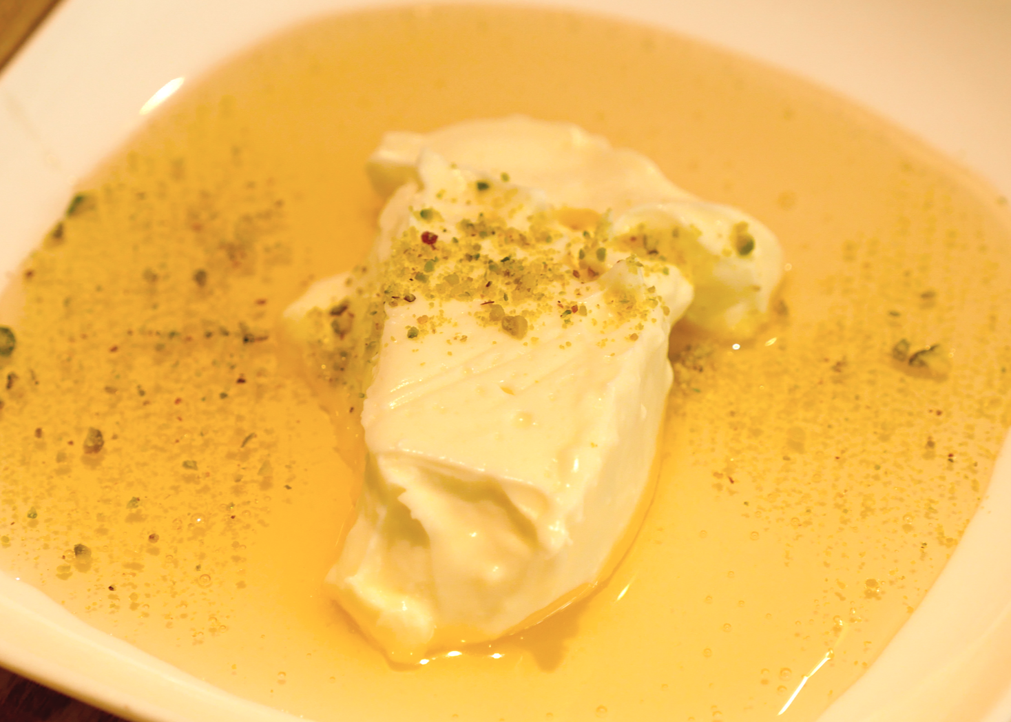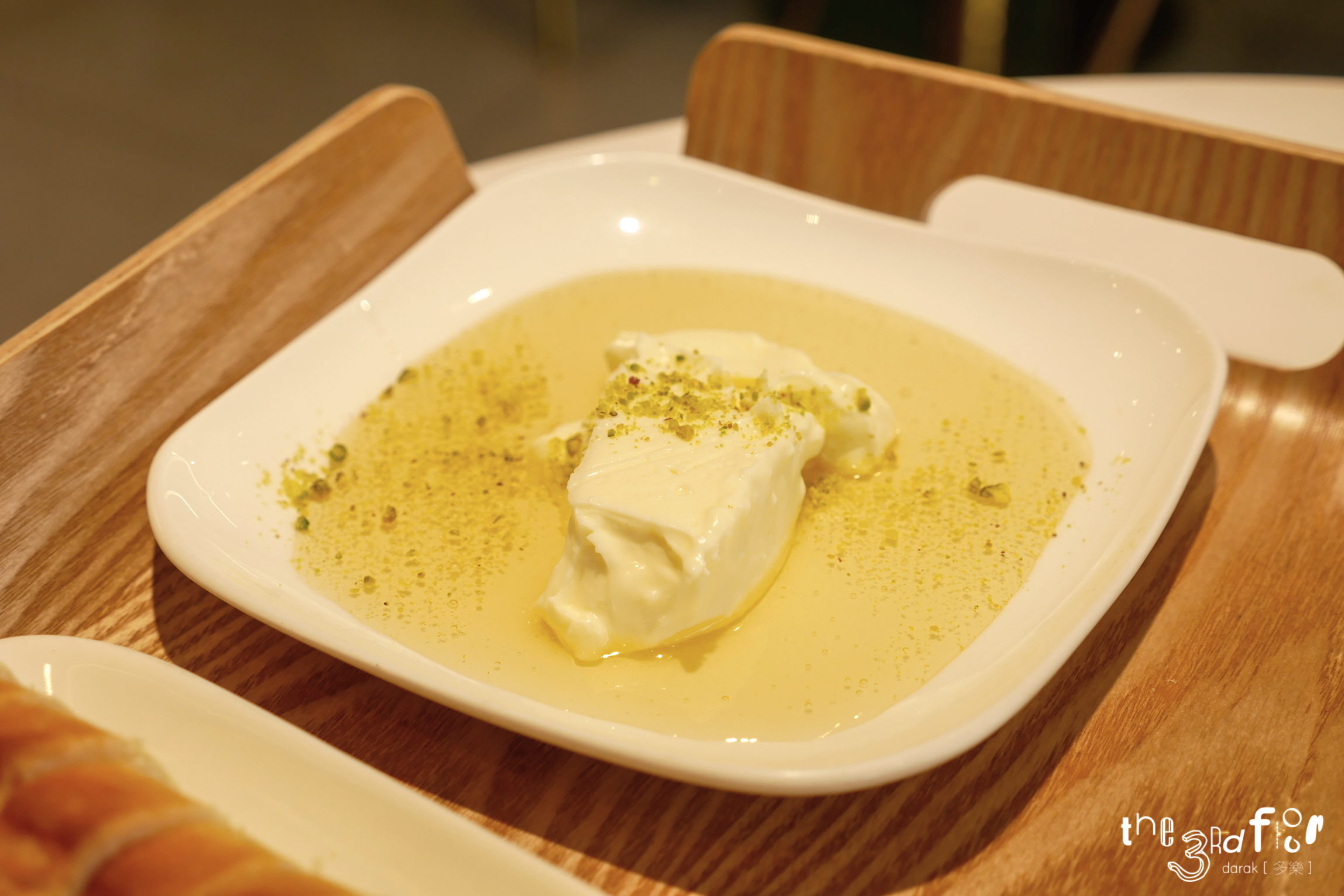 카이막은 클로티드 크림 계열의 디저트로 버터보다 느끼함이 덜하며 크림보다 훨씬 진한 맛의 꾸덕한 유제품이다. 꿀과 함께 먹는 것이 포인트이기 때문에 이렇게 크림을 꿀에 담궈둔 채로 서빙된다.