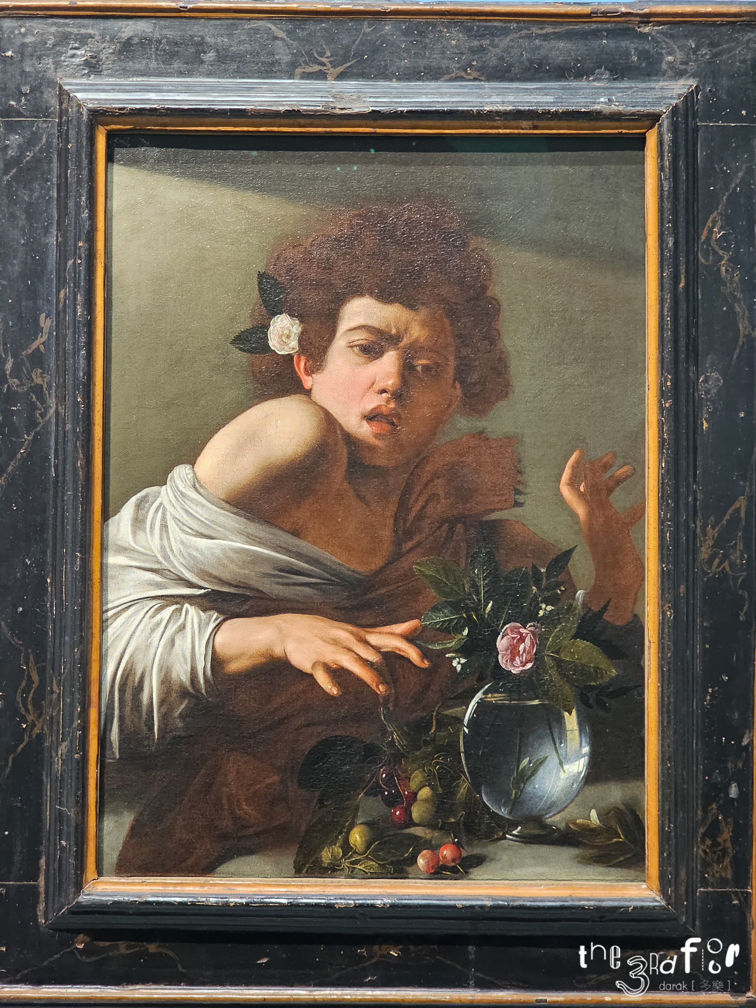 이 작품은 일상적인 상황 속에서 순간적인 감정을 강하게 표현한 것이 특징으로, 카라바조 작품에서 자주 보이는 강한 명암대비를 이용하여 인물을 더욱 극적으로 보이게 만드는 효과를 준다. 주변에 놓인 과일, 화병, 꽃들은 감각적인 즐거움이나 덧없는 쾌락, 그리고 그에 따르는 고통을 상징적으로 보여주는 요소로 해석되기도 한다. 인간의 감정과 순간적인 움직임을 사실적으로 표현한 바로크 회화의 대표작이라고.