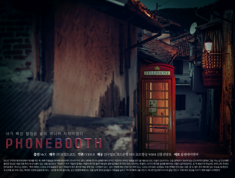 가장 마지막 스토리 라인에 해당하지만, 우리는 당시에 예약 가능한 테마를 아무 생각 없이 예약했기 때문에ㅋㅋㅋ 스토리 라인 하나도 모르고 엔딩 보기 시이작! 이미 없어진 마당에 이야기 하자면 안대를 벗었더니 시작 위치가 폰부스 안이어서 매우 놀랐고 신선했다. 이게 첫 방탈출이어서 그 신선함을 온전히 느끼지 못한 것 같지만... 이 때의 기억 때문에 오히려 방탈출을 눈을 감지 않고 들어가면 이상하다고 느껴지는 요즘.