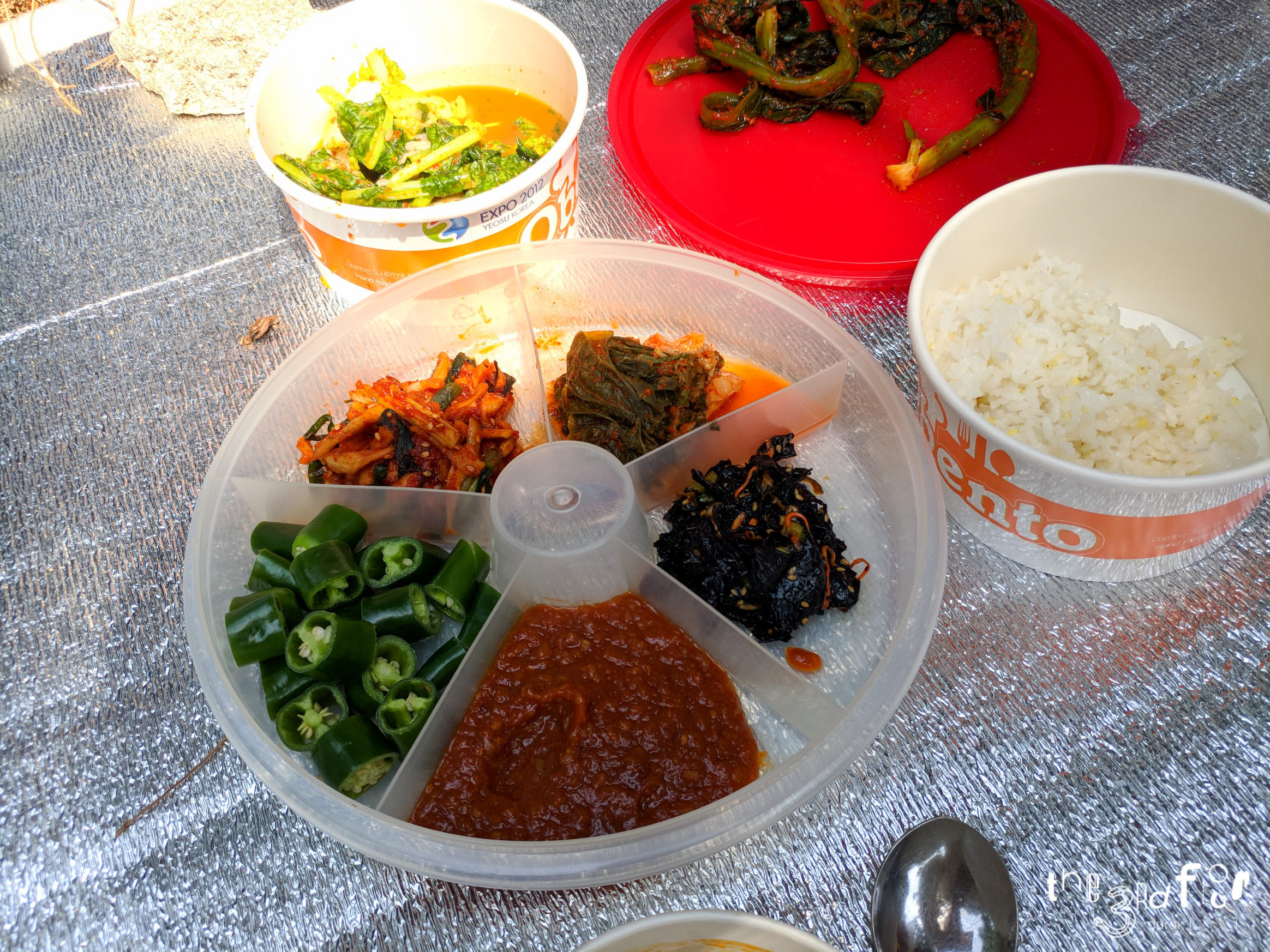 방생 이벤트가 끝나고 나서는 저 나무 밑에서 점심을 먹었다.