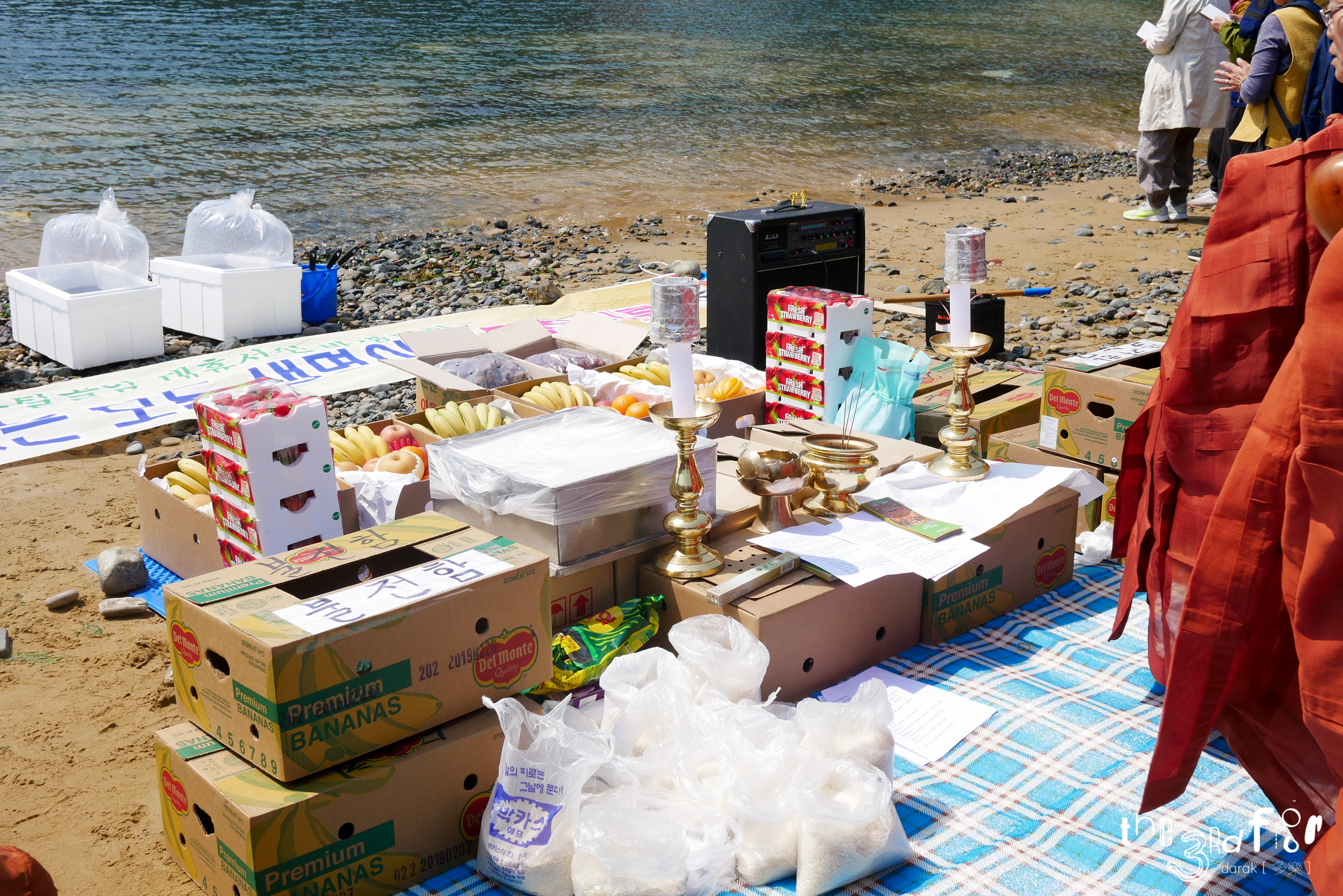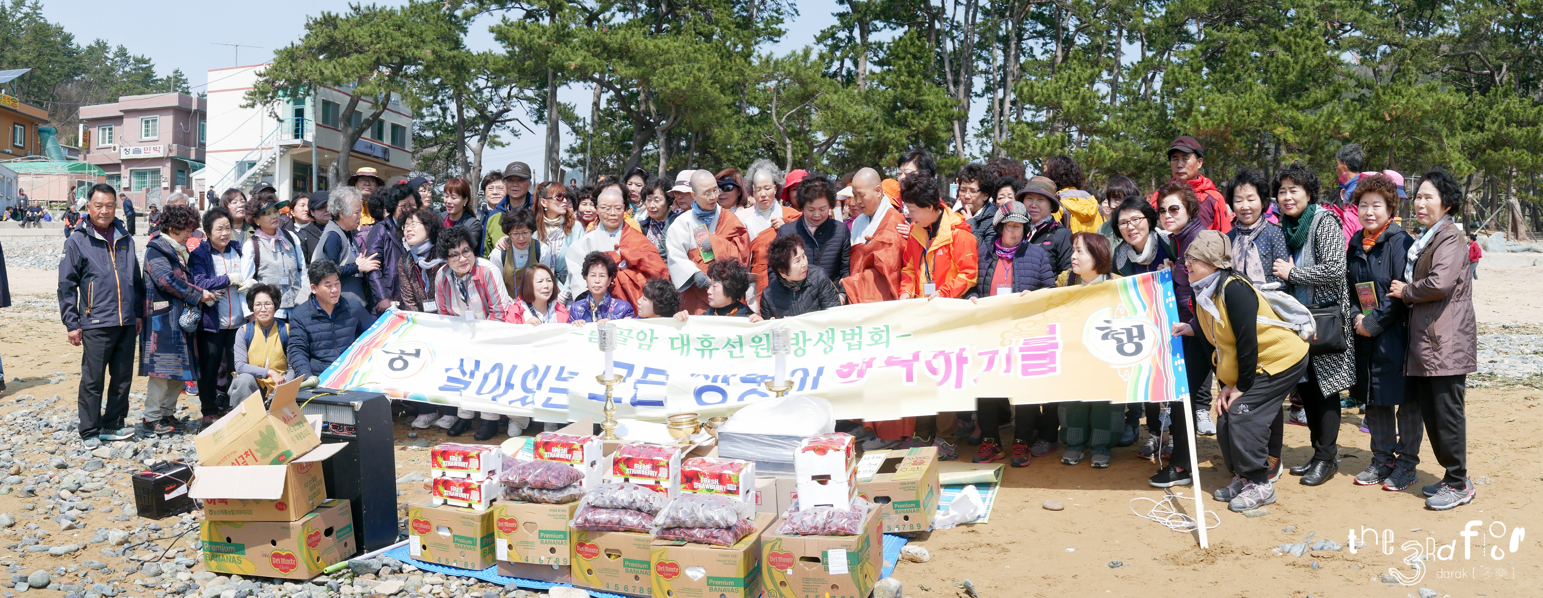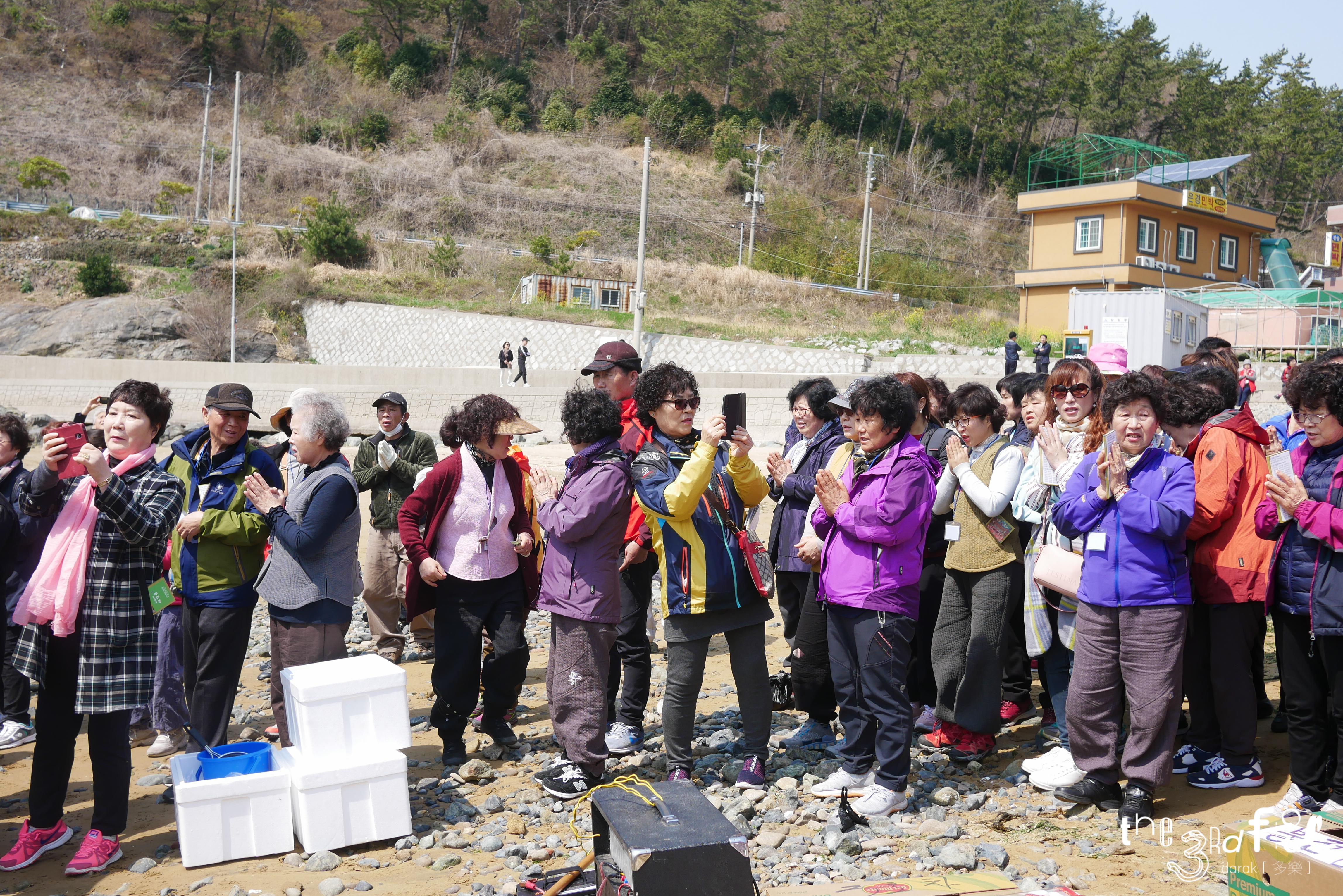알고보니 절에서 다같이 가는 거라나? 해수욕장에서 물고기 방생을 하고 절 두 군데를 들르는 일정이란다.