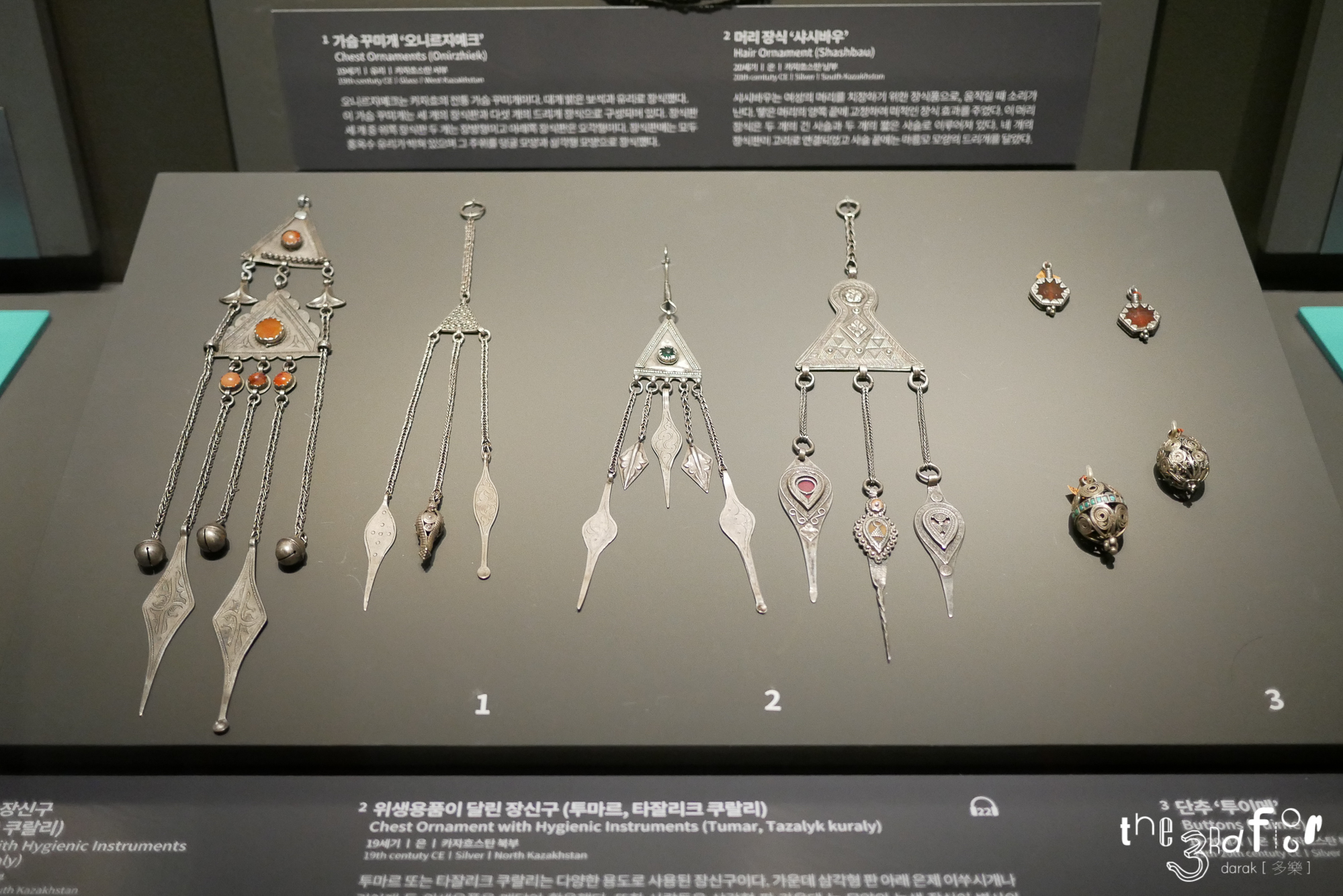 다양한 팔찌, 목걸이, 허리띠 등의 장신구들이 있다. 저 중에 몇가지는 말을 꾸밀 때 사용하는 장신구였던 것 같은데 설명 부분을 촬영해놓지 않아서 기억이 안남...ㅋㅋㅋ
