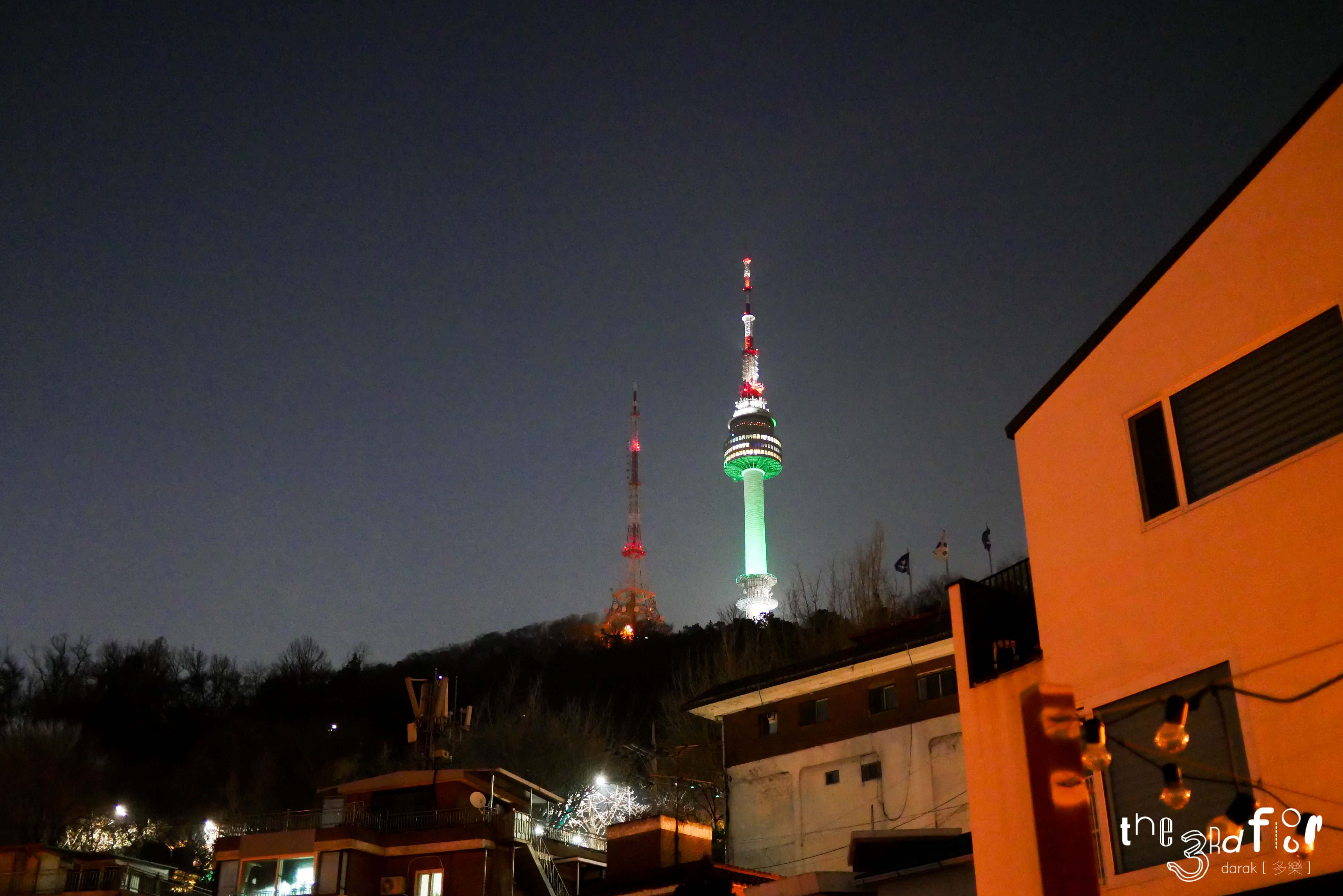침실 세 개, 화장실 1.5개, 조리도구가 갖춰진 주방과 테이블이 있는 거실이 마음에 들어서 예약했고 총 비용은 약 24만원. 가장 끌린 건 서울타워가 바로 코 앞이라는 위치+멋진 야경을 볼 수 있다는 점이었는데... 오후부터 비가 와서 테라스 구경은 거의 못했다. 겨울이라 춥기도 했고...