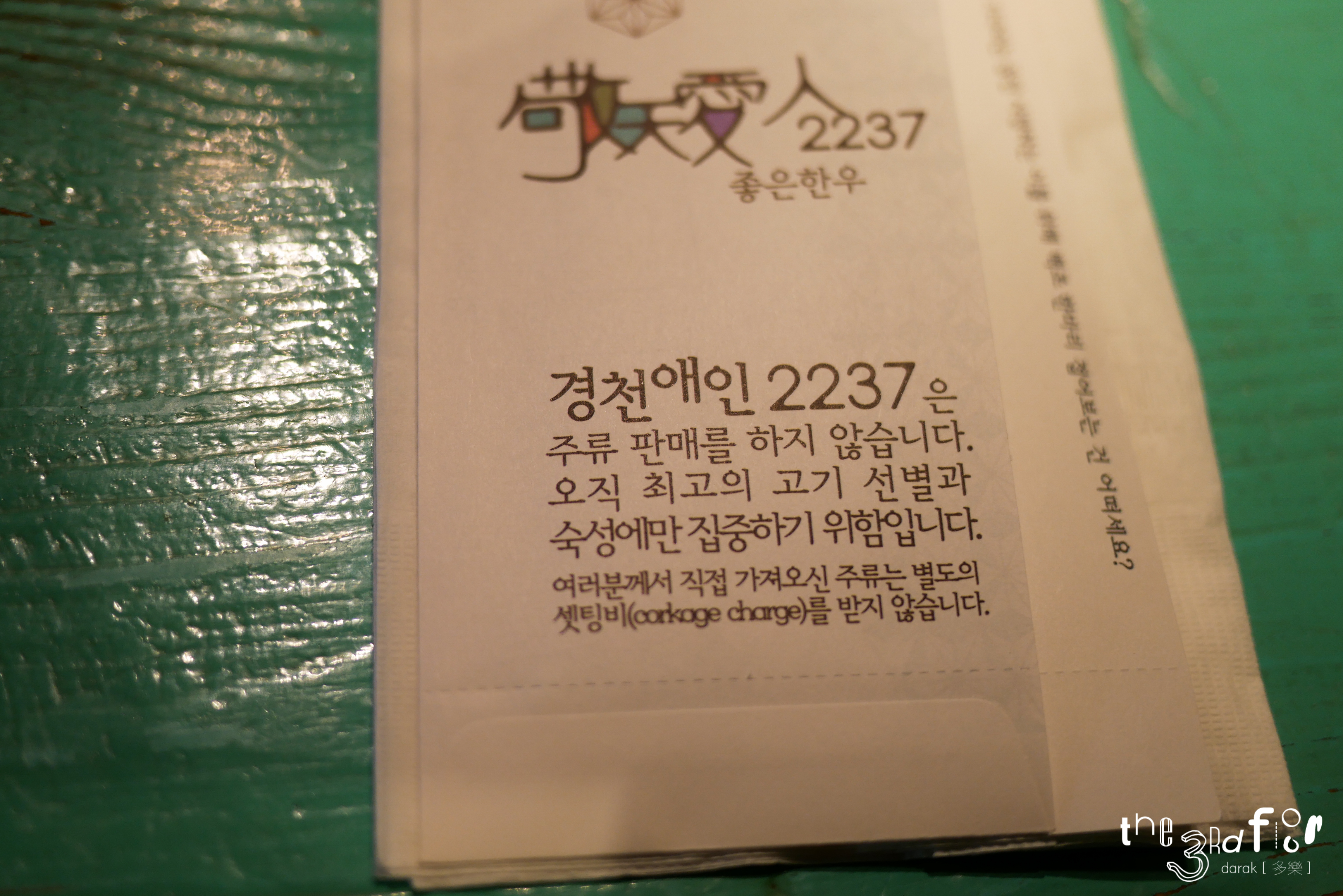 ㅇㅅㅌ님 왈 이 곳 사장님은 철학이 있으신 분이라며... 한우 맛에 집중하기 위해 주류를 판매하지 않는다고 설명해주셨다. 그 대신 BYO[각주:1]는 가능하다.