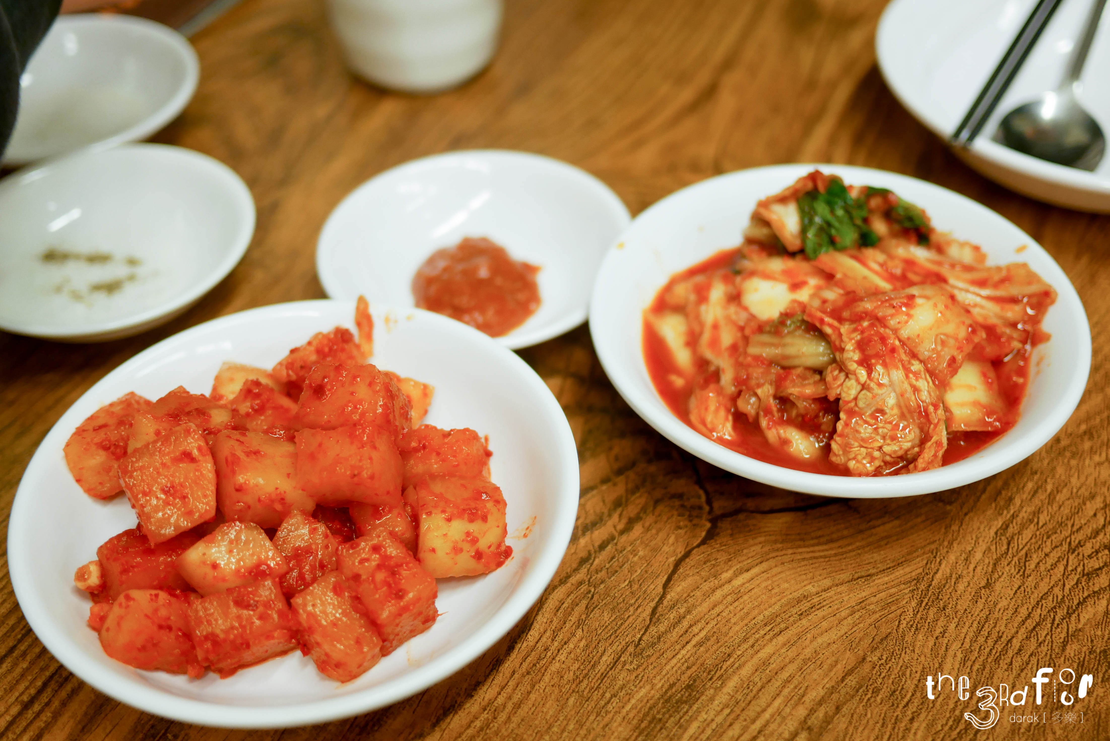 밑반찬으로는 깍두기와 배추김치