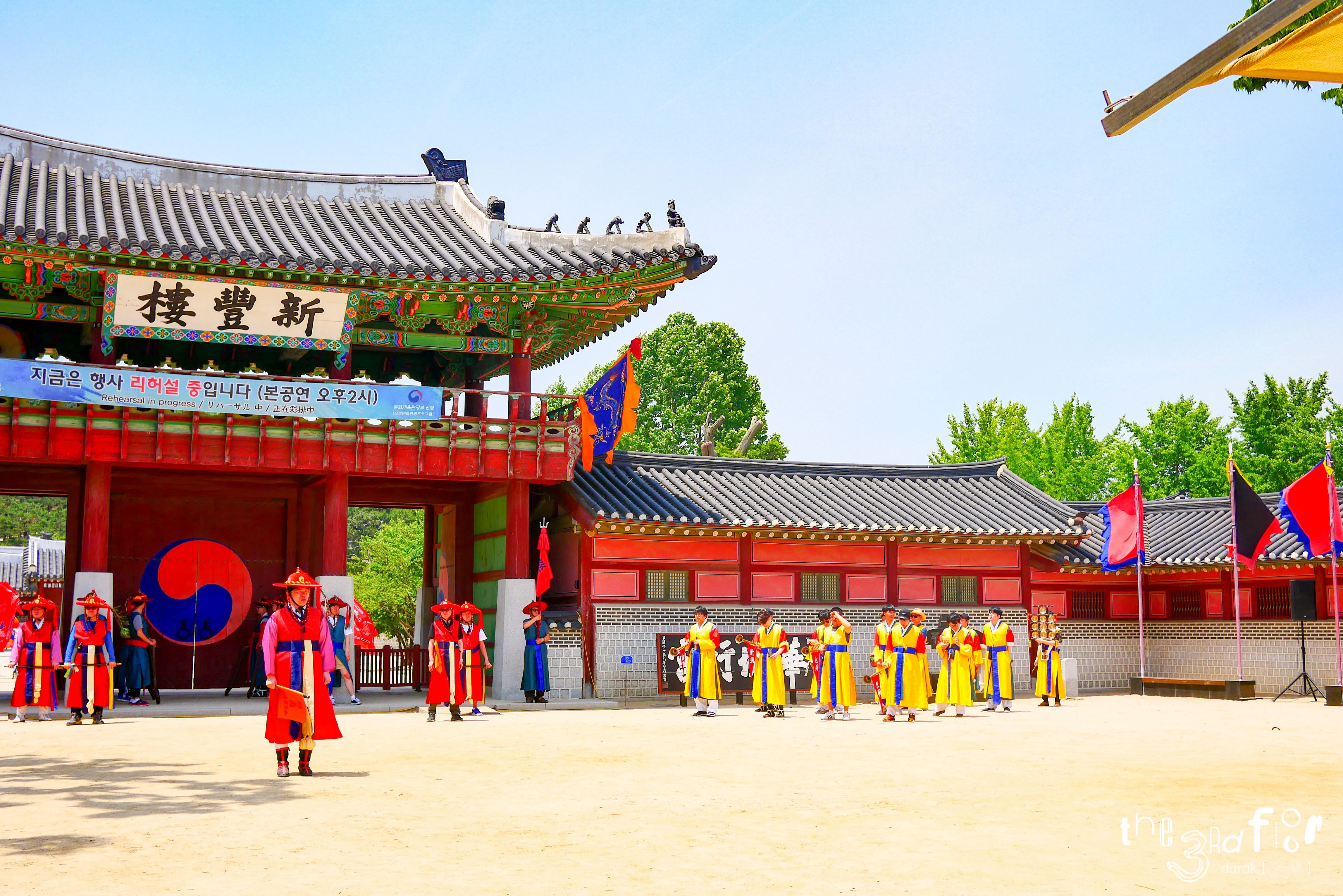 화성행궁의 정문 신풍루 역시 관광우편날짜도장으로 접하여 익숙한 이름. 매주 토요일, 일요일 오후 2시에 토요상설공연과 장용영 수위의식을 진행한다. 나는 1시 쯤에 도착하여 시간이 애매한 관계로 관람은 하지 못했지만, 위처럼 준비과정을 살짝 엿볼 수 있었다.
