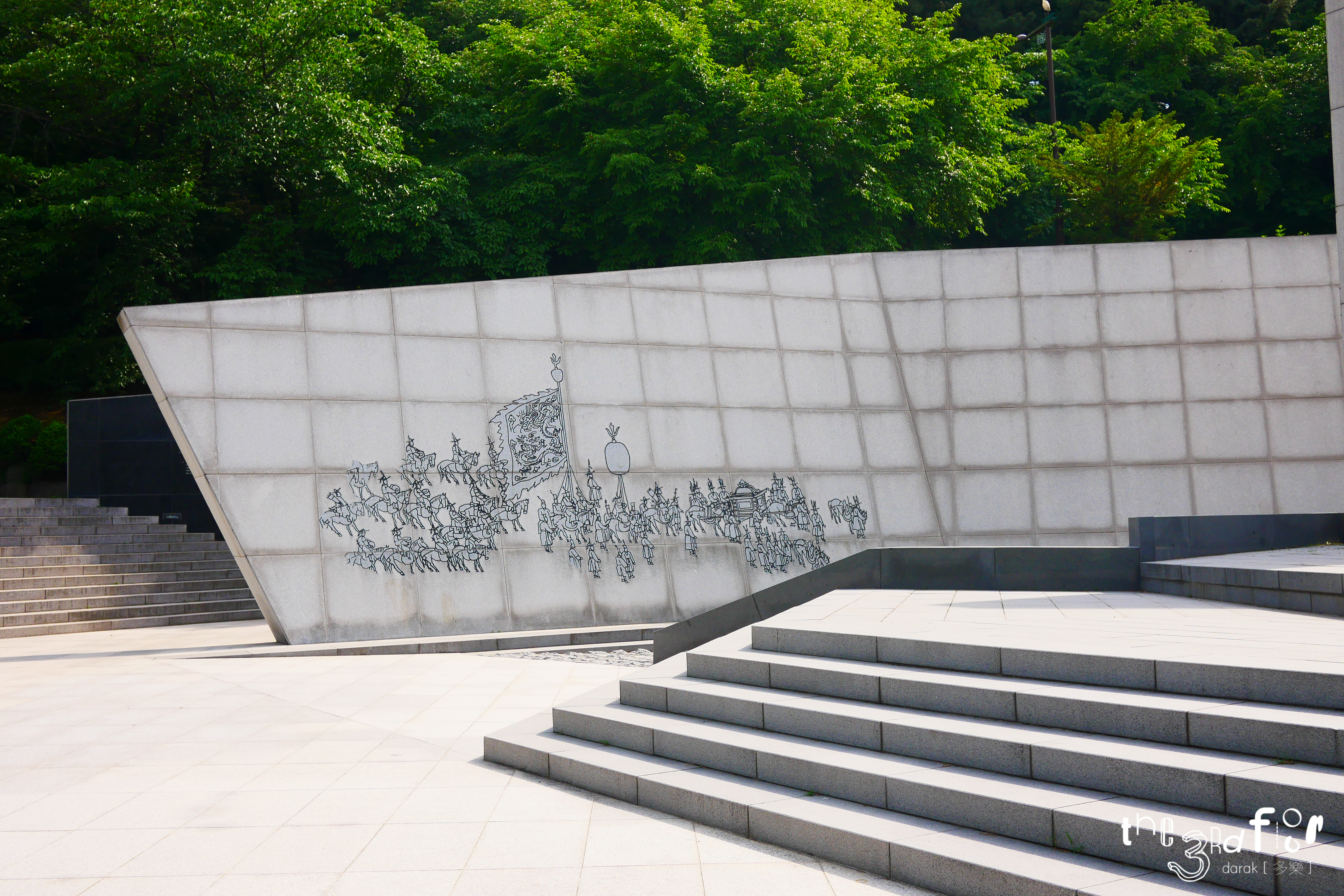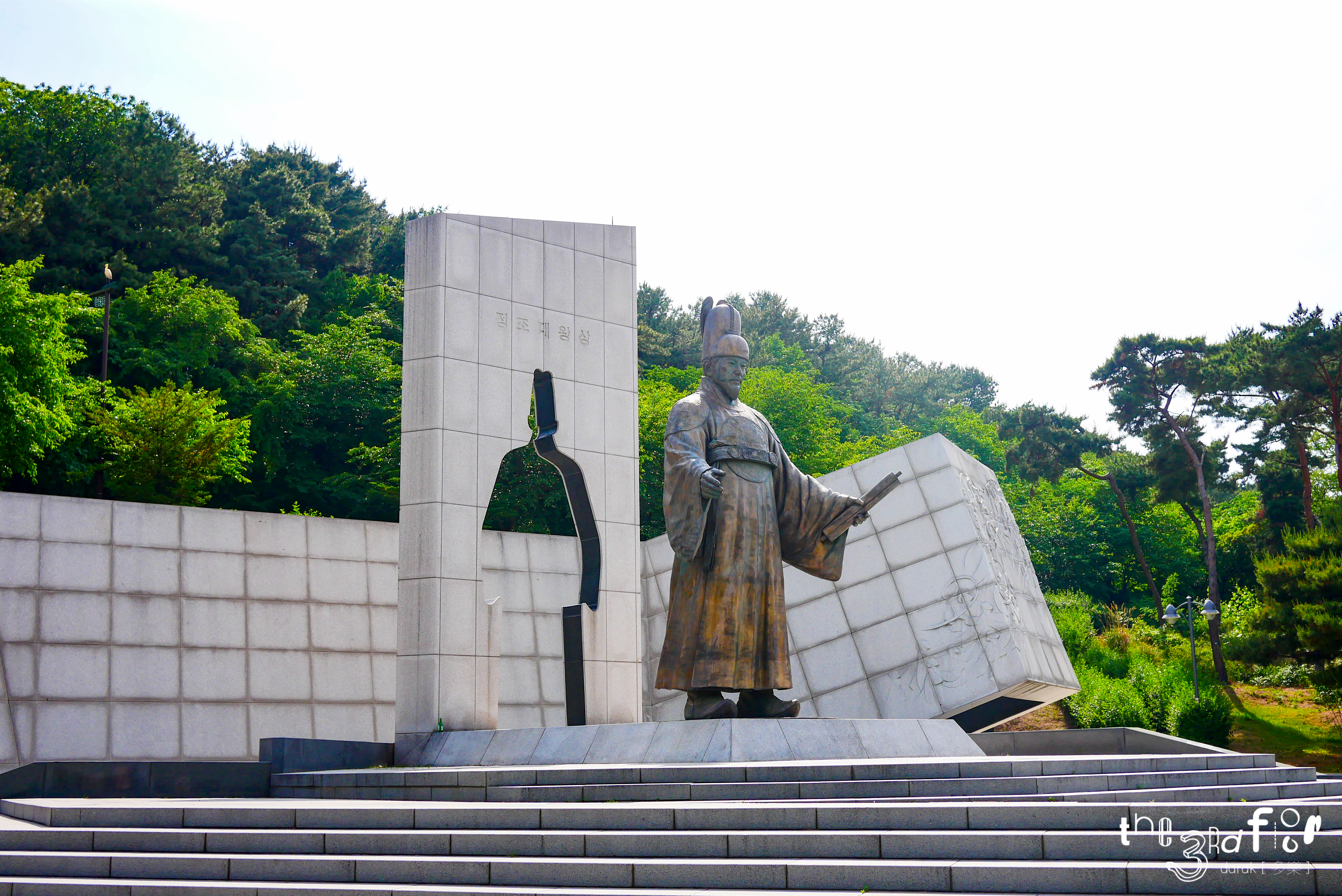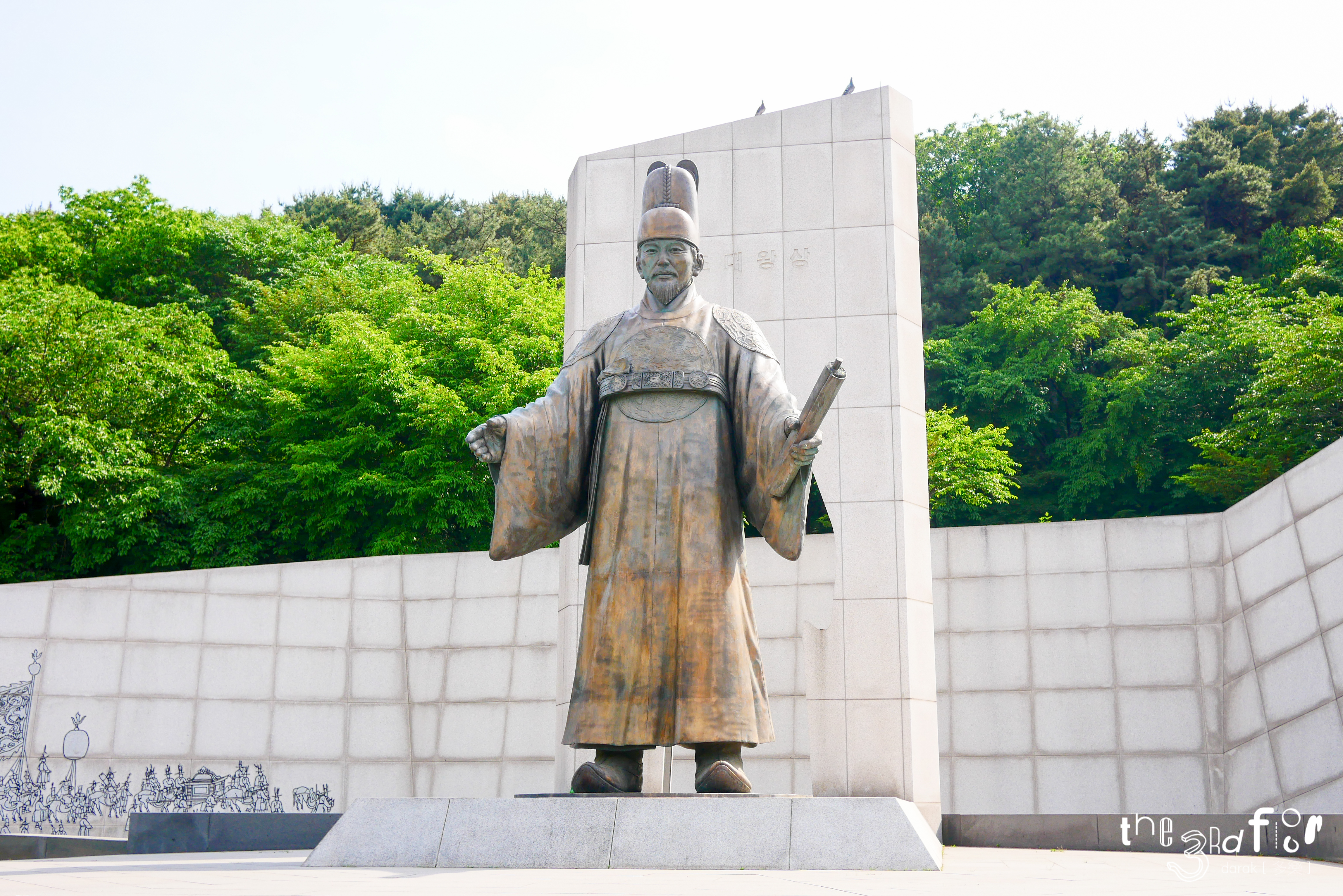 내려갈 때는 반대쪽 길로... 정조대왕 동상이 세워져있다. 행궁어차를 타면 이 동상의 뒷모습을 슬쩍 감상하면서 팔달산 정상까지 올라간다.