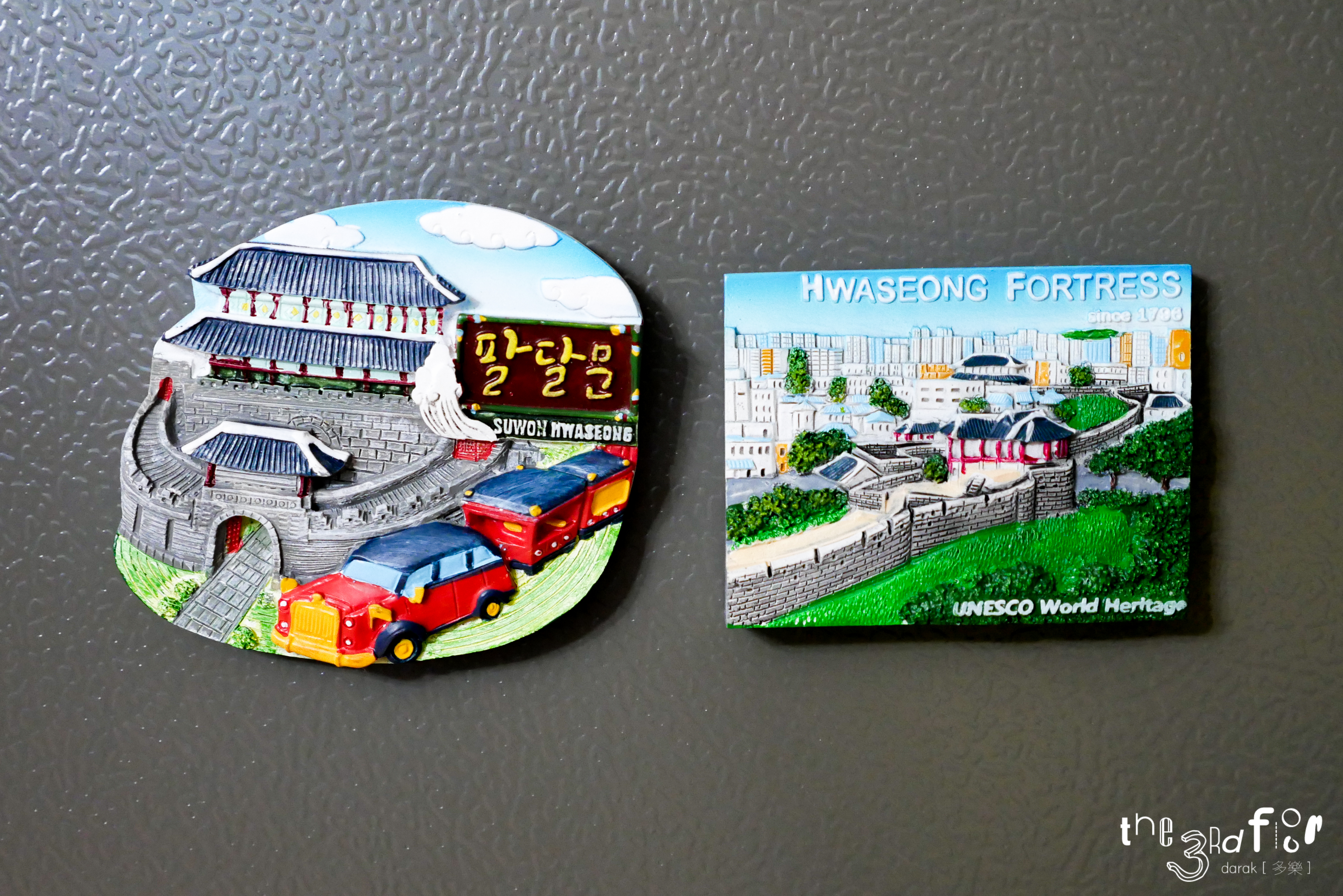 오른쪽의 수원 화성 성곽을 표현한 마그넷은 수원화성박물관 안에 있는 카페에서 엽서를 고르면서 함께 구입한 제품이다.
