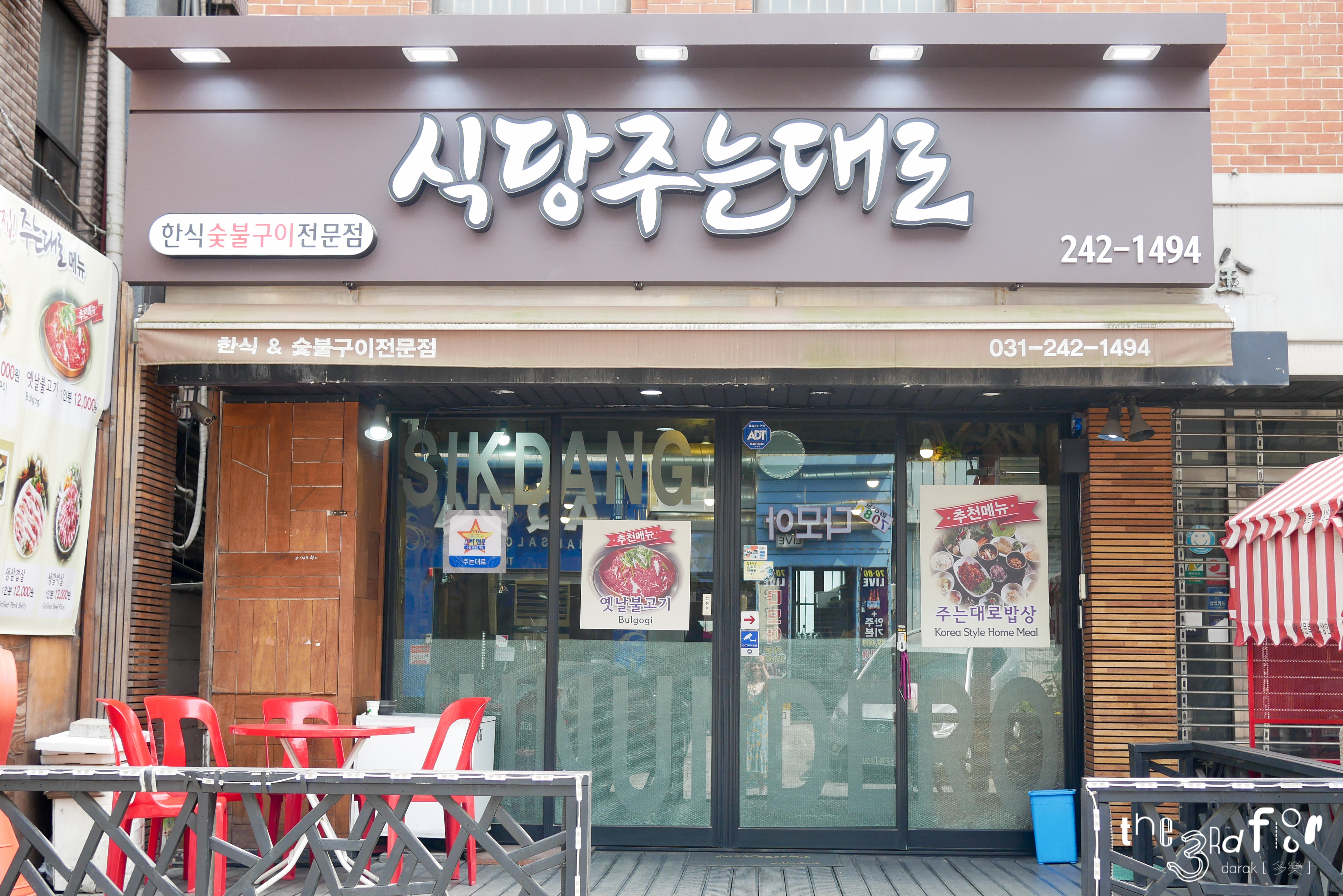 주최자님이 식사를 어디서 해야할지 몹시 고민에 고민을 거듭하셨다. 피자집, 수제버거집 여러곳을 고민하셨는데 내가 그냥 한식을 먹고 싶다고 해서 팔달문 근처에 있는 식당으로 가기로 했다. 상호명이 '식당주는대로'. 일종의 백반집이라고 해야하나?
