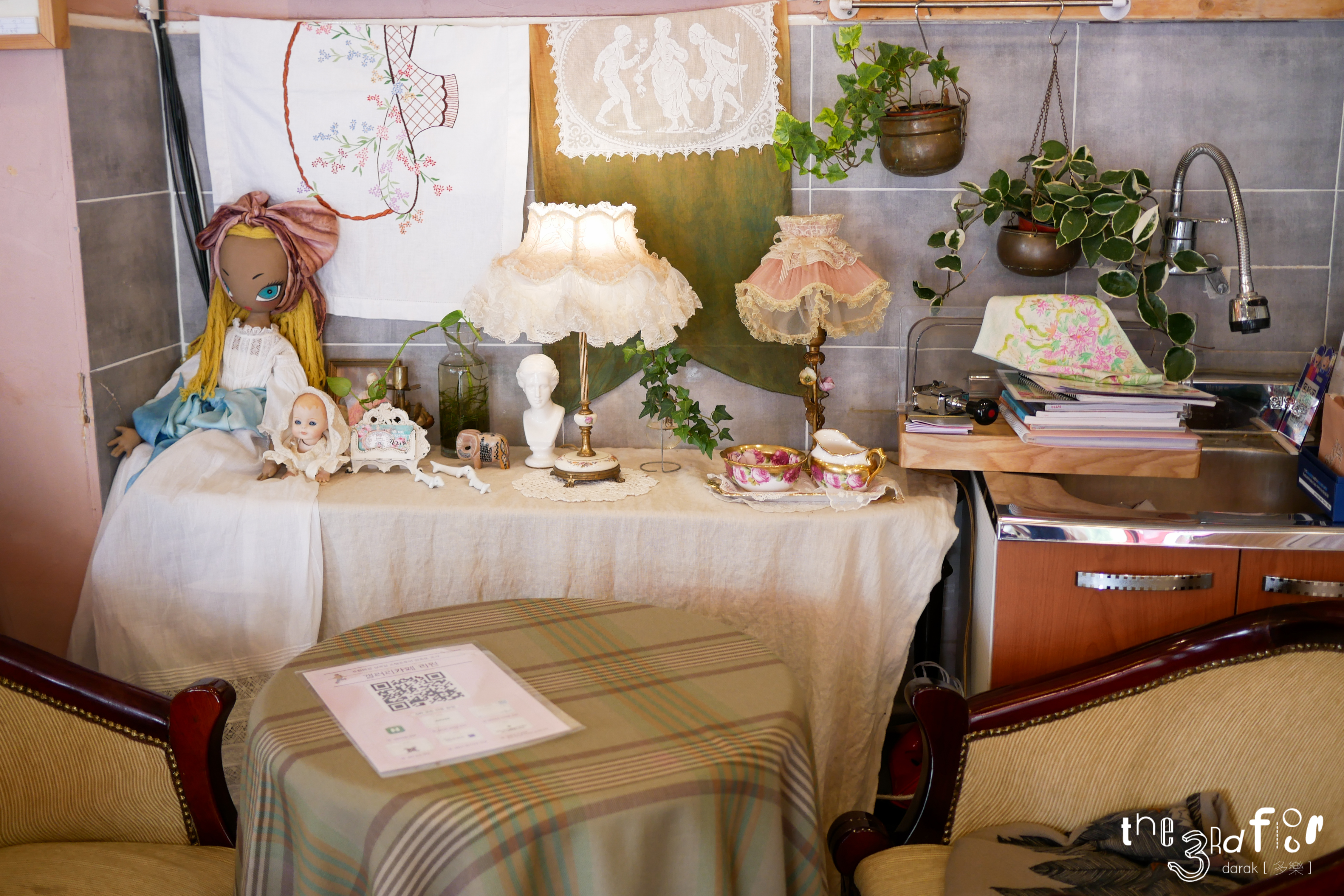 꽃과 자수, 귀여운 컵과 접시들로 탁자를 꾸며놓아 눈이 즐거운 곳이었다. 작지만 예쁜 카페이니 팔달문 근처에서 쉬어가고 싶다면 추천!