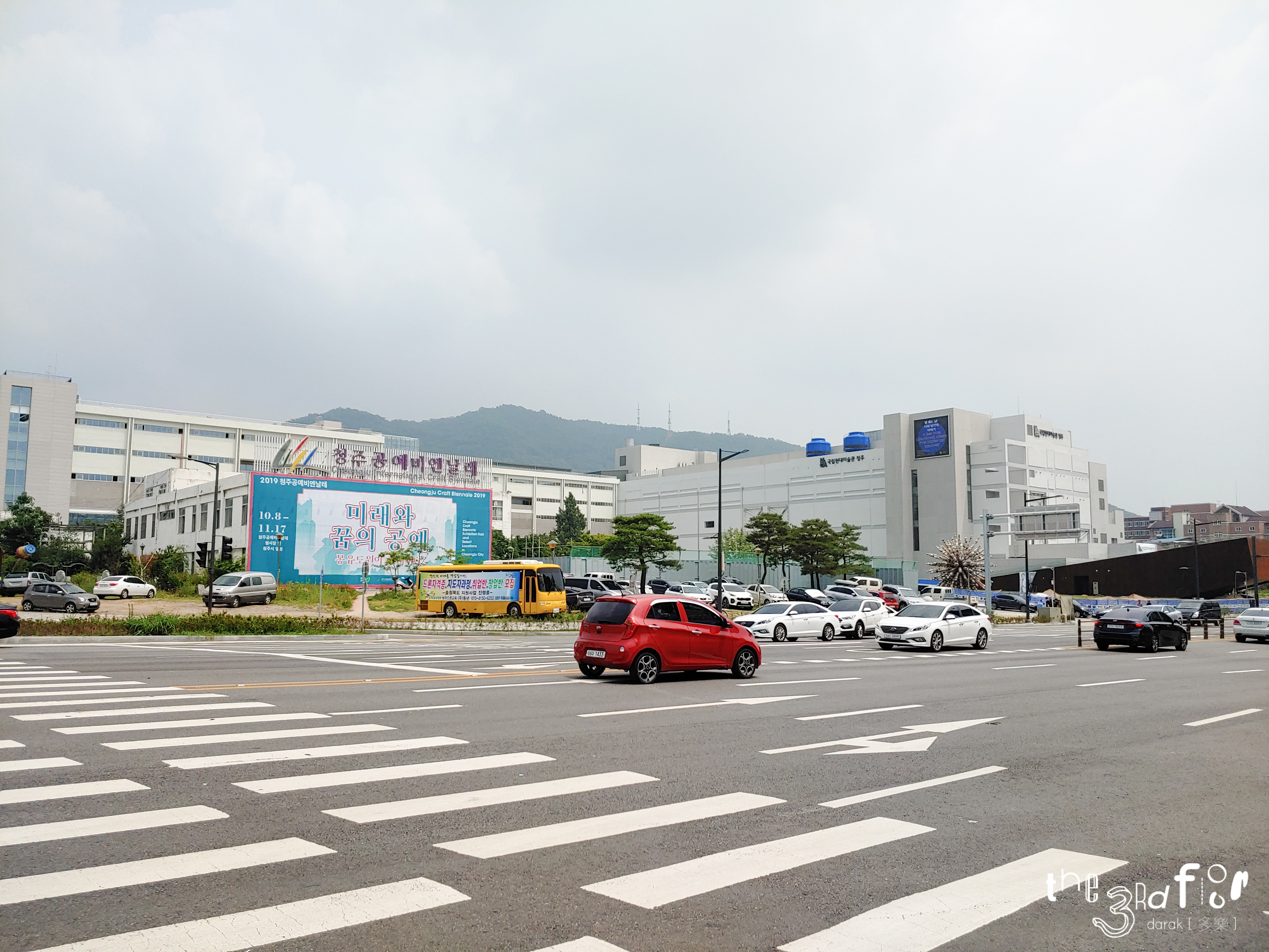 건너편에서 버스 하차를 하고 기다란 횡단보도를 건너면 파란색 수통(?)이 보이는 국립현대미술관 청주관.