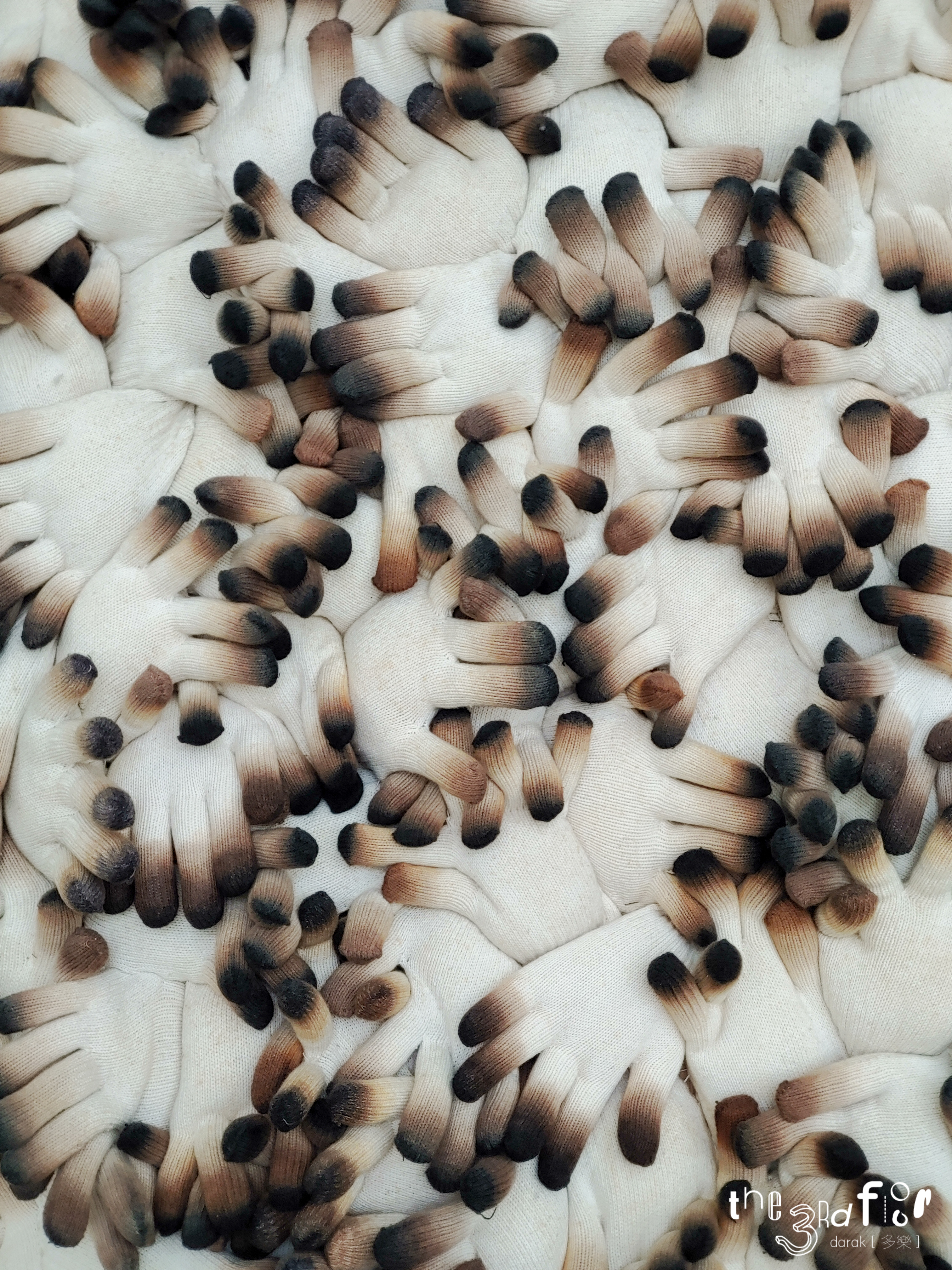 작가는 미국 유학시절에 어머니가 보내주신 면장갑을 보고 여러 감정이 떠올랐다고 한다. 그 후 면장갑을 이용해 다양한 작품을 만들었고 그 중 한 작품이다. 일상생활에서 흔히 볼 수 있는 장갑으로 독특한 모양의 작품을 만들어 더 신기하다. 장갑의 손끝이 그라데이션으로 물들어 있기 때문에 멀리서 보면 회화작품처럼 보인다는 특징이 있다.