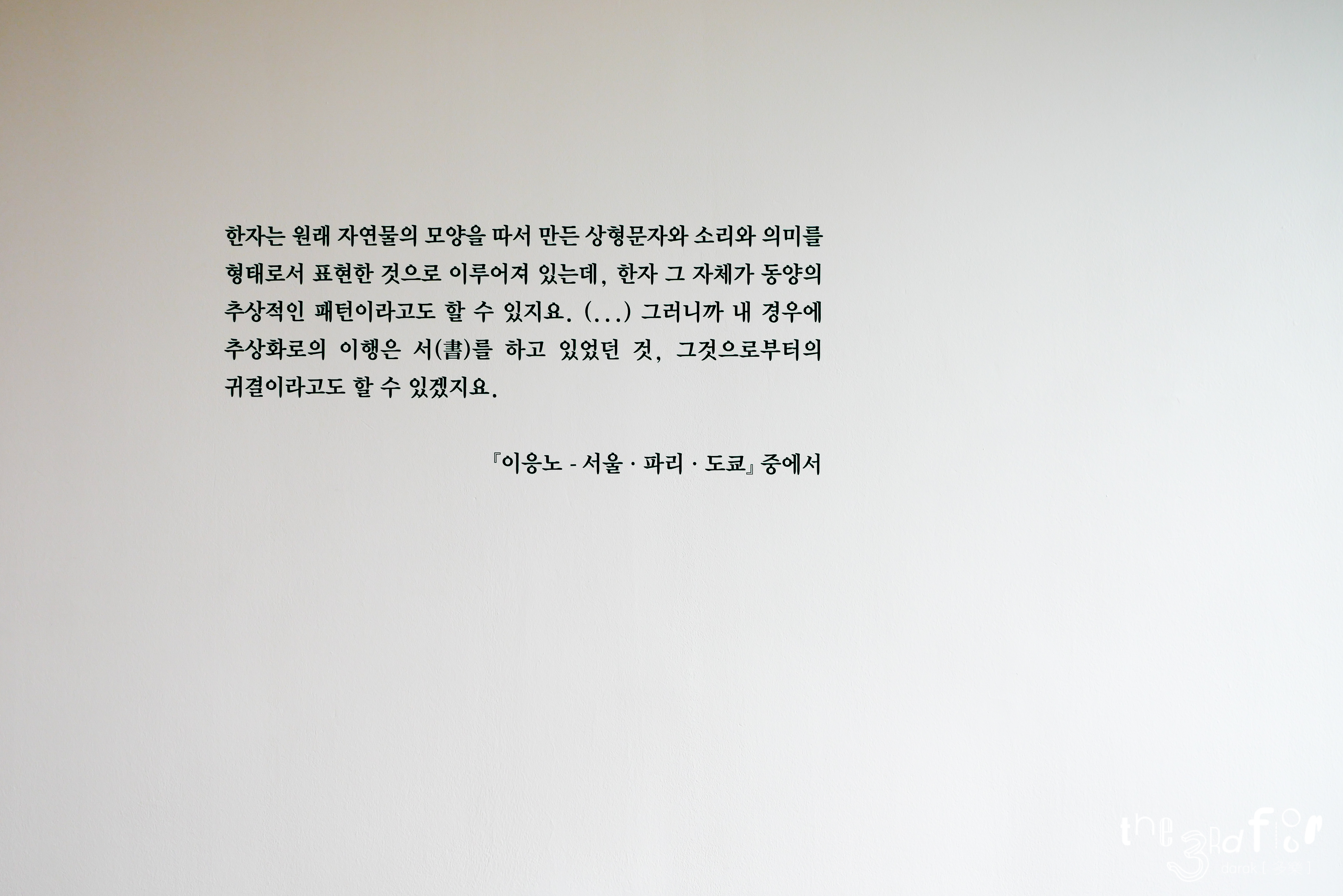 전시회장은 겉으로 보기엔 작지만 안쪽에 공간이 더 있어서 전체 관람을 하는데 꽤나 시간이 걸린다. 처음에는 전시 테마에 걸맞게 문자로 되어 있는 작품이 벽면에 여럿 걸려있다. 작품의 제목을 언급하면서 감상을 말하고 싶지만, 안타깝게도 대부분의 작품 이름이 <구상>이다. 이응노 화백의 작품 80%의 제목은 구상이 아닐까? ㅋㅋㅋ