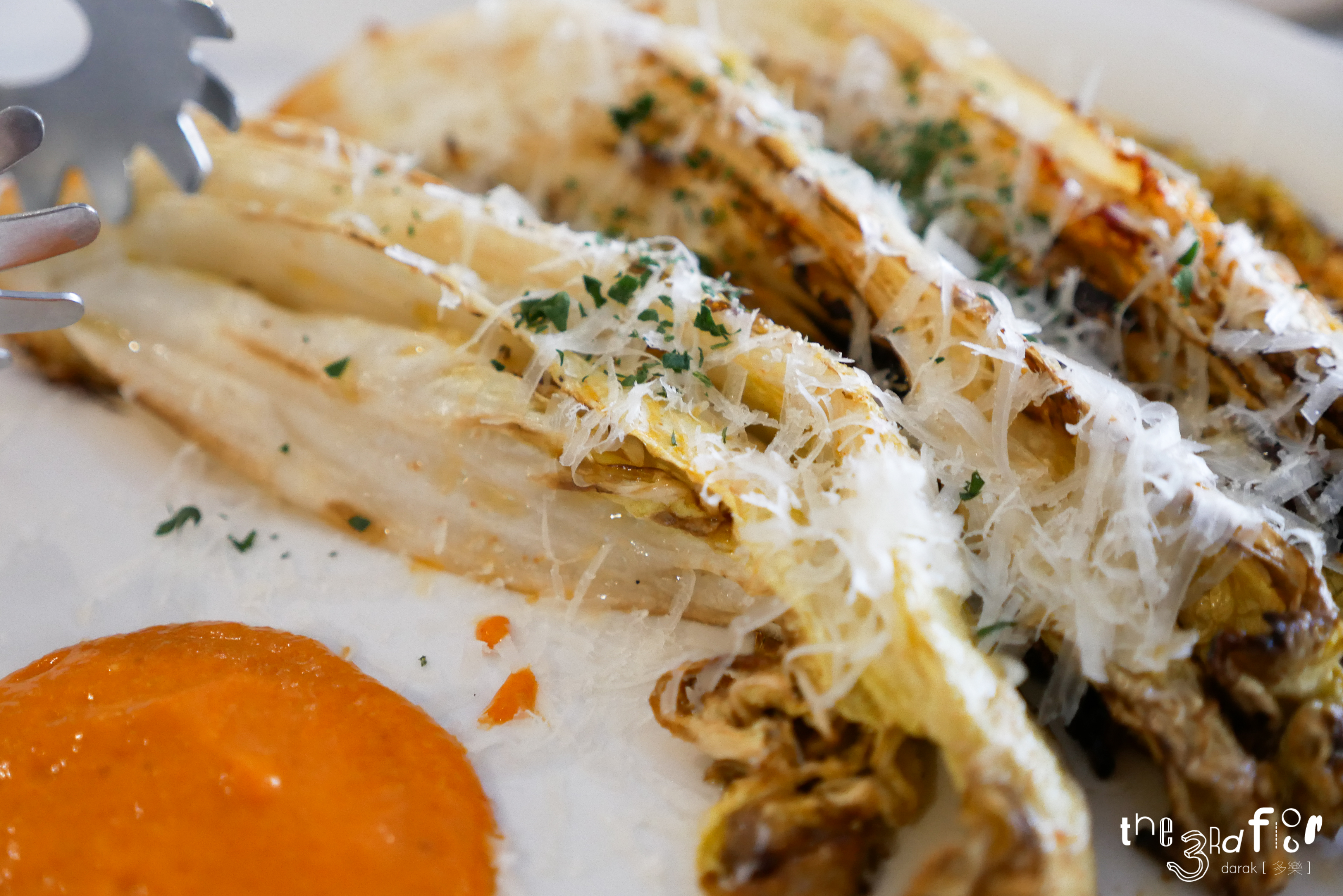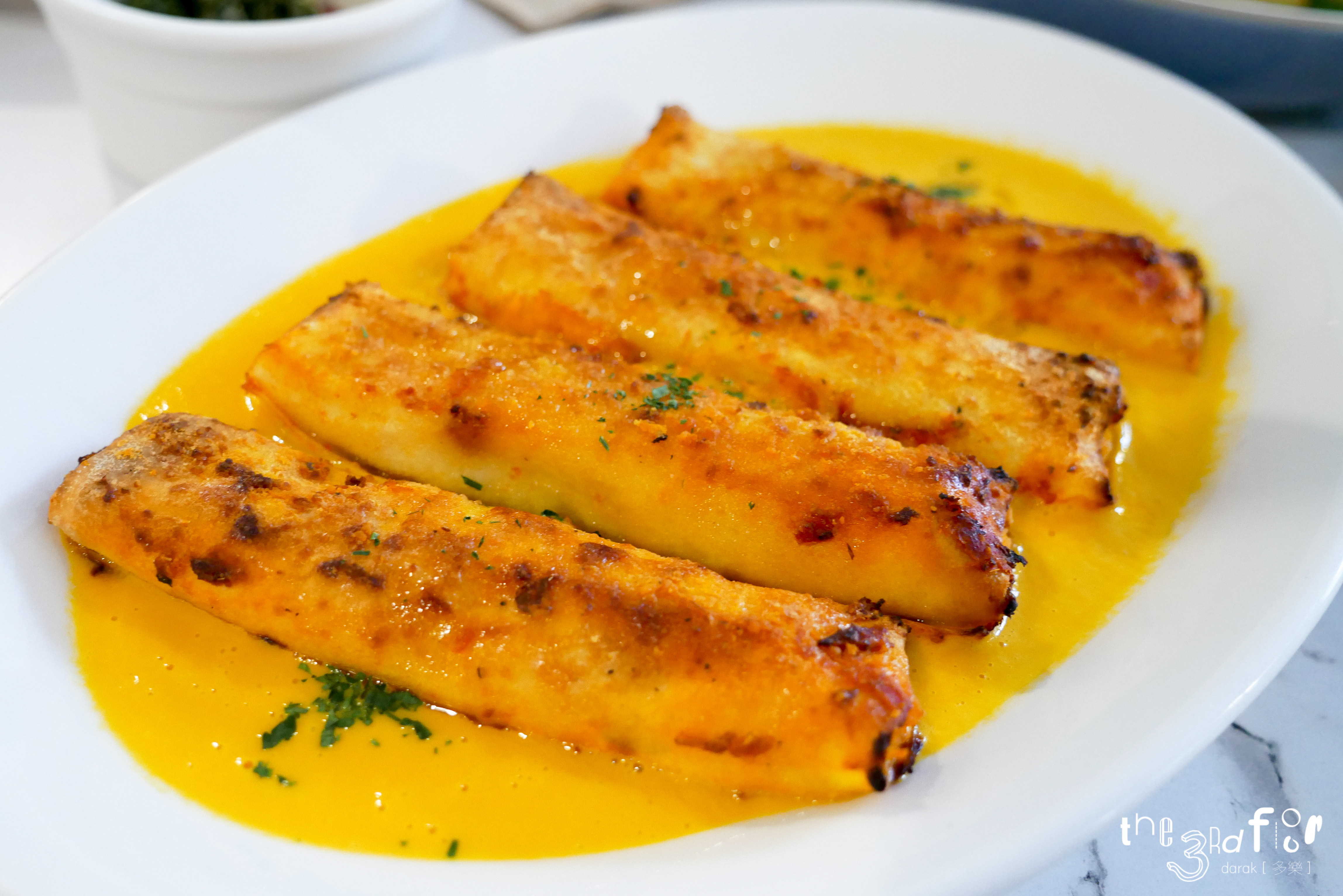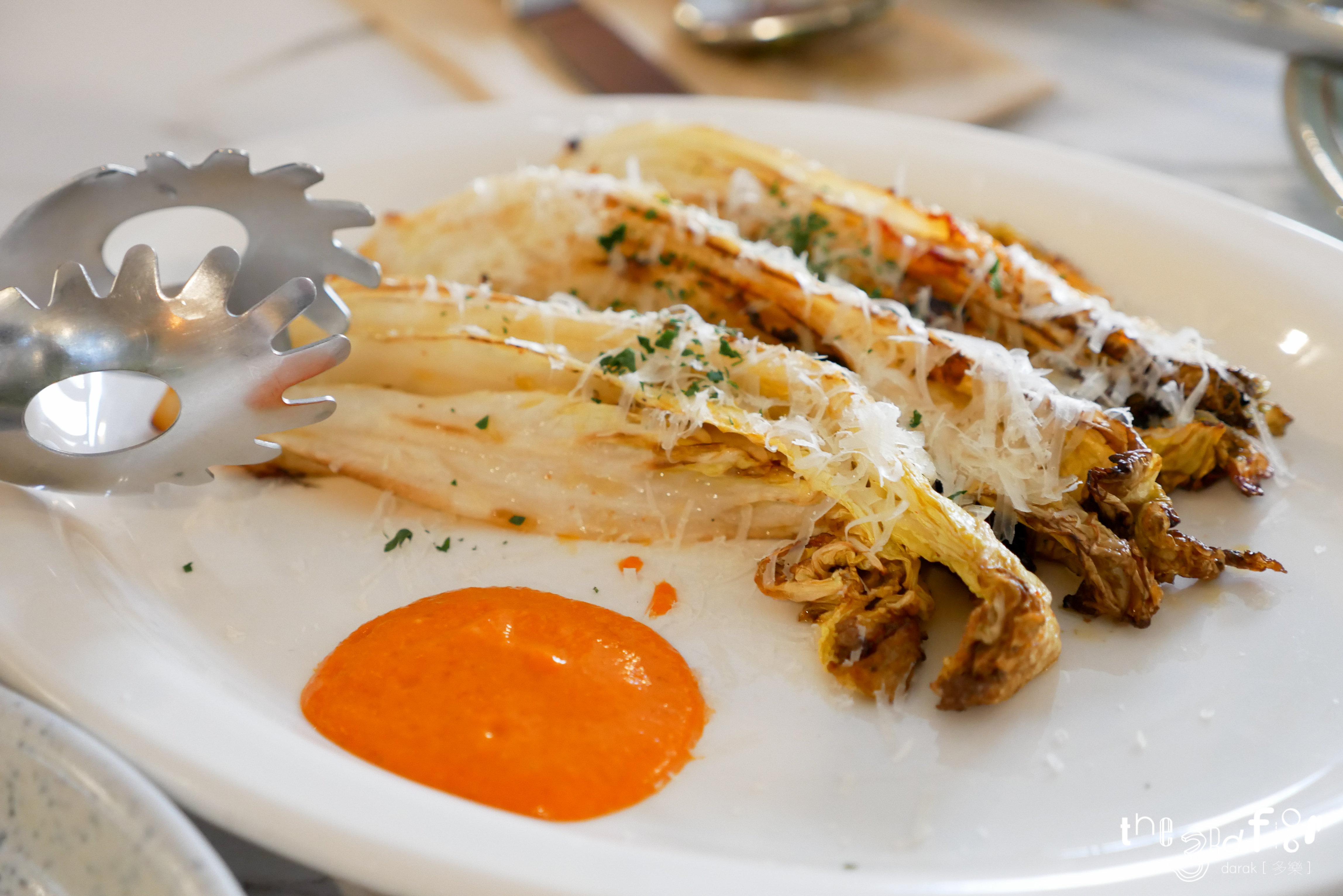화이트 와인을 넣어서 구운 알배추. 으른들이 좋아하는 배추전이 생각났다. 비주얼이 예뻐...