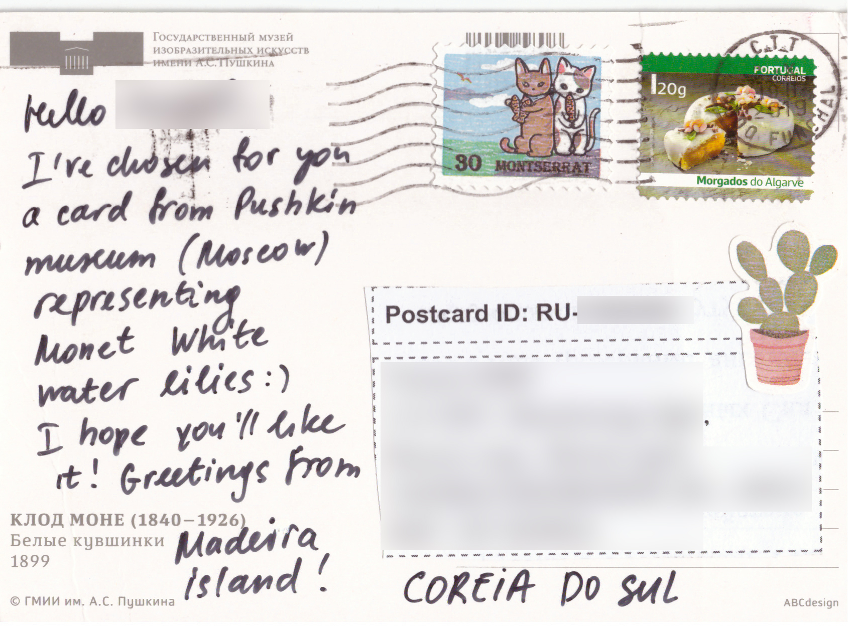 러시아 또는 중국의 엽서가 굉장히 많이 오는데 인구수가 많아서 그렇다. ㅋㅋㅋ