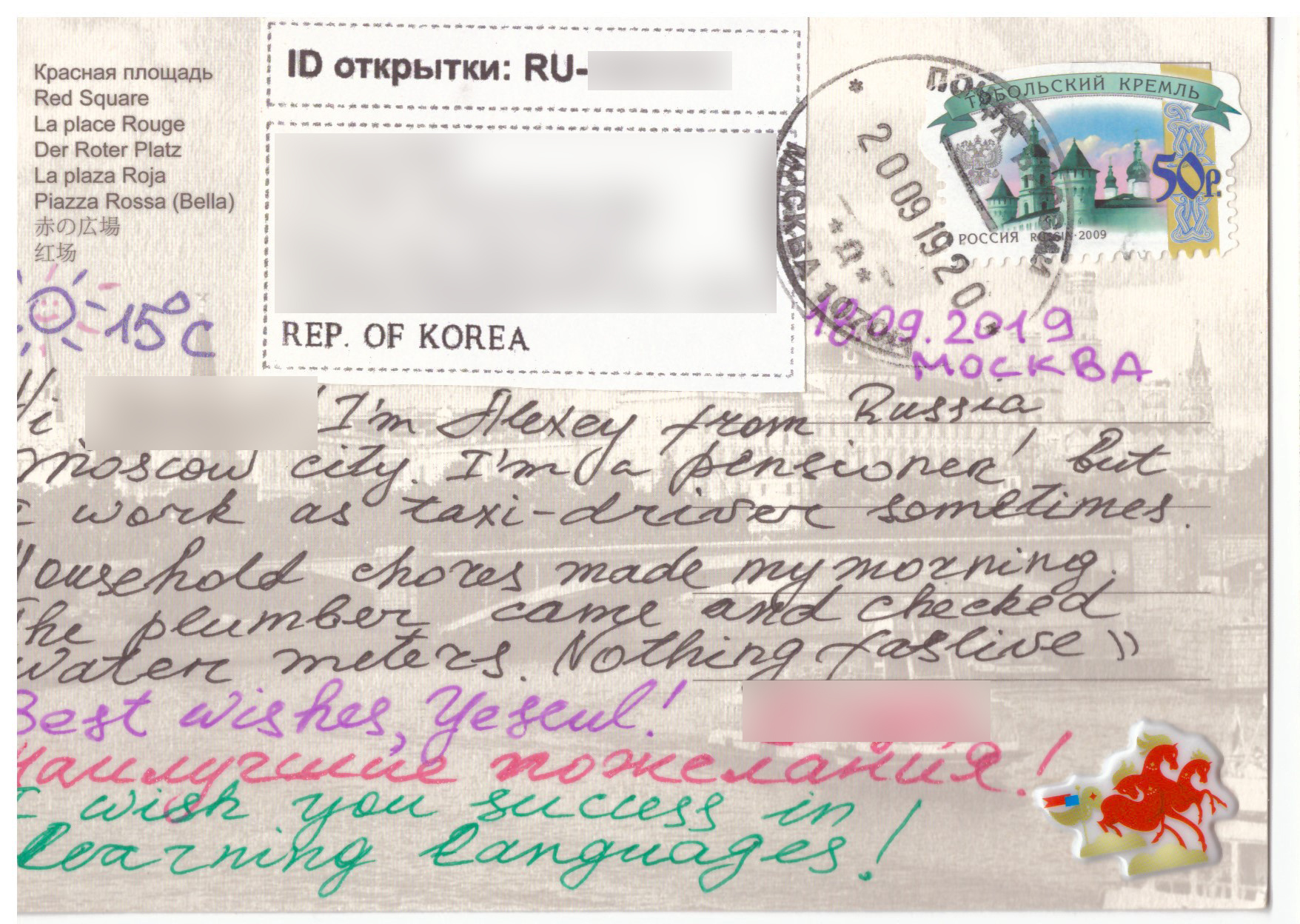 여태까지 받은 모든 러시아 엽서 중에서 가장 마음에 든다.