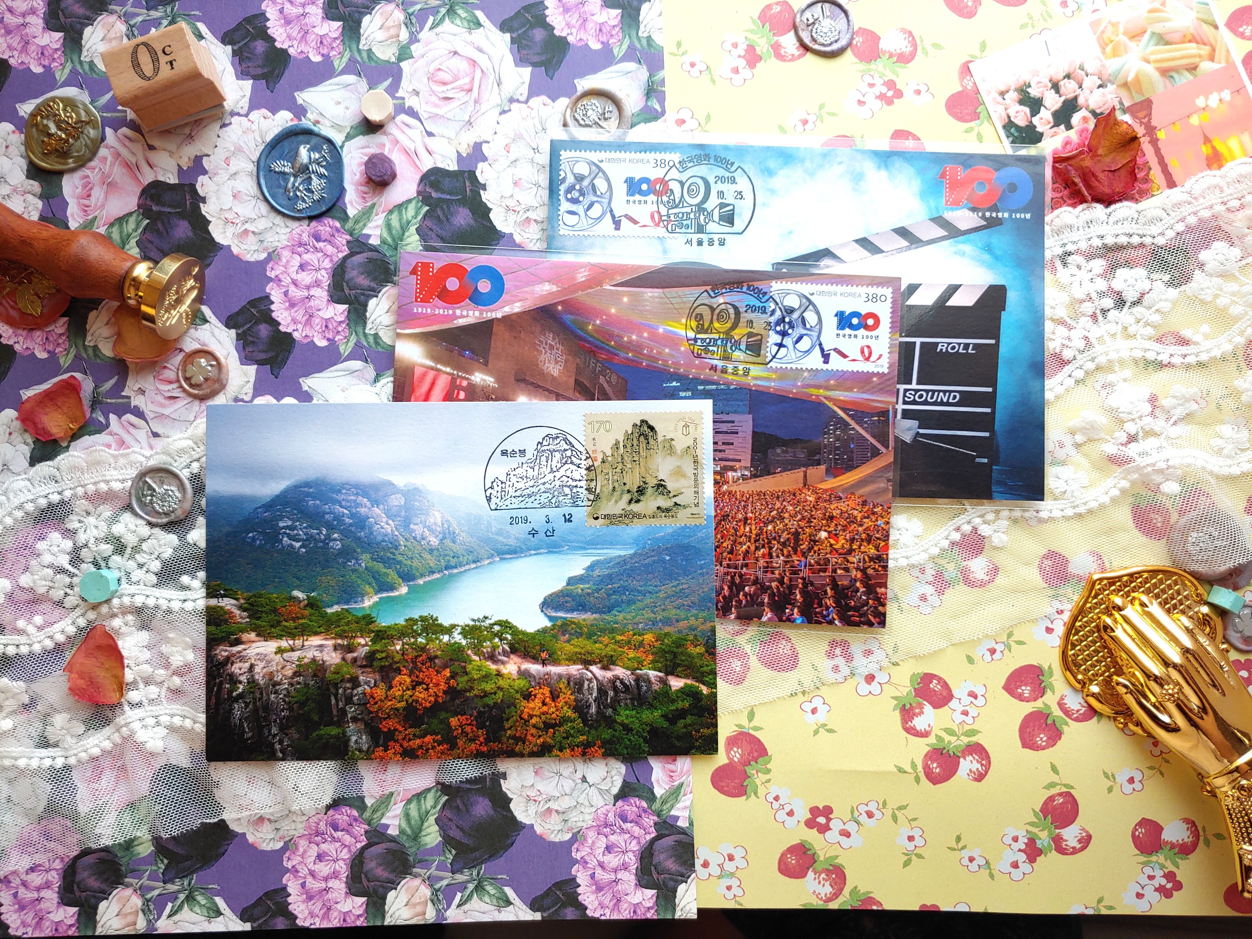 2019년 10월의 기념 우표는 한국 영화 100년을 맞이하여 나온 1종 우표. 딱히 특별한 느낌이 없어서 맥시 엽서도 3장만 만들고 끝! ㄷㅎ님한테 구매한 엽서로 만들었는데 우표 박물관에서 찍고 나니 세상에 뒷면을 반대로 인쇄하셔서... 조금 당황했던 기억이 난다.